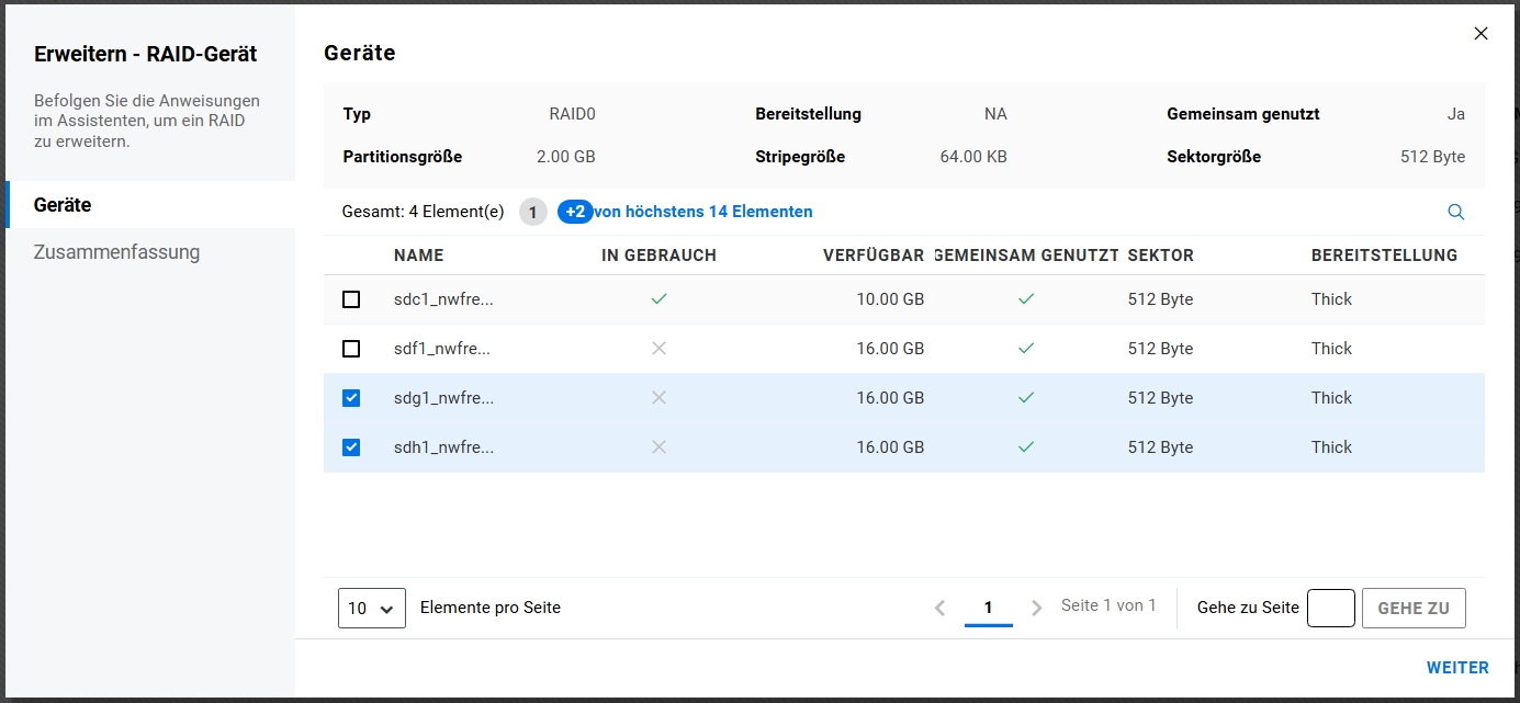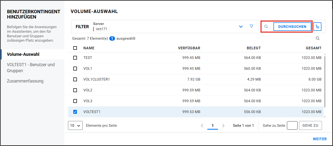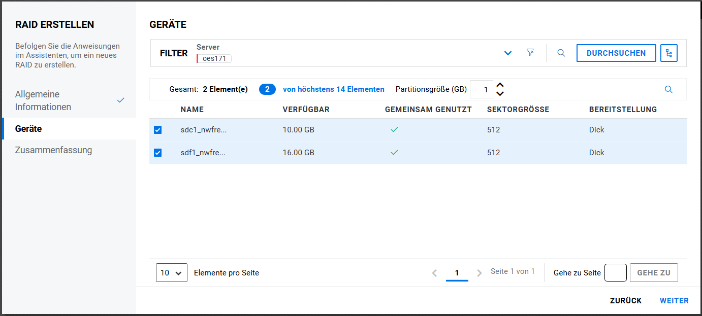 Navigieren Sie auf der Seite Container zum Server, um die Container auszuwählen, und klicken Sie auf Weiter.