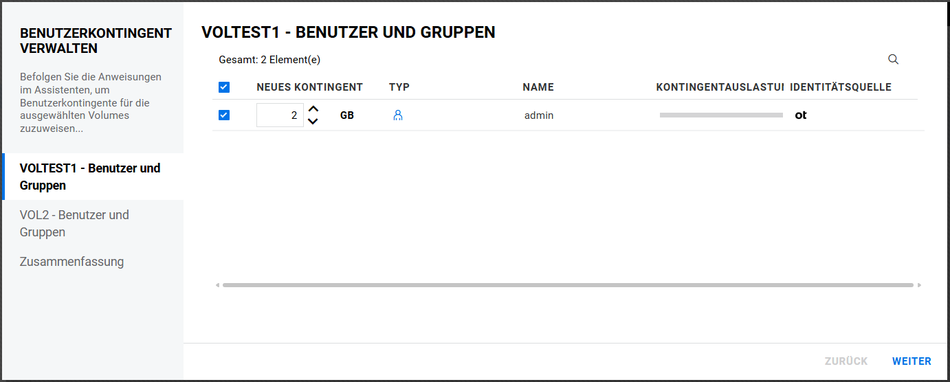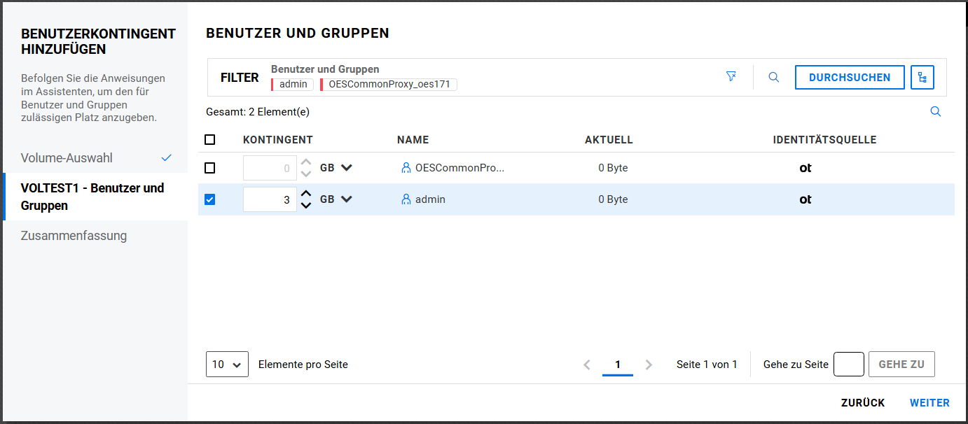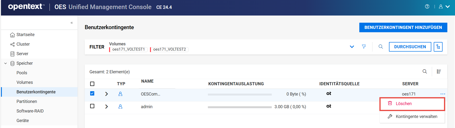 Dadurch wird der Benutzerkontext aus der Liste entfernt. Sie können diese Aktion für eine Mehrfachauswahl ausführen.