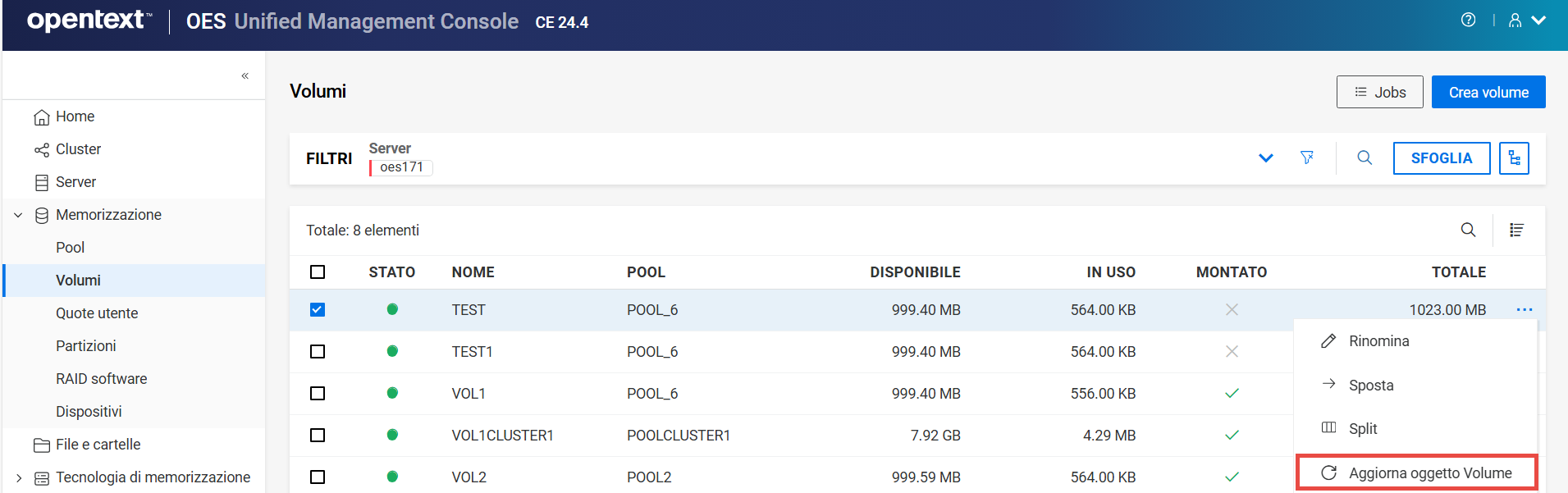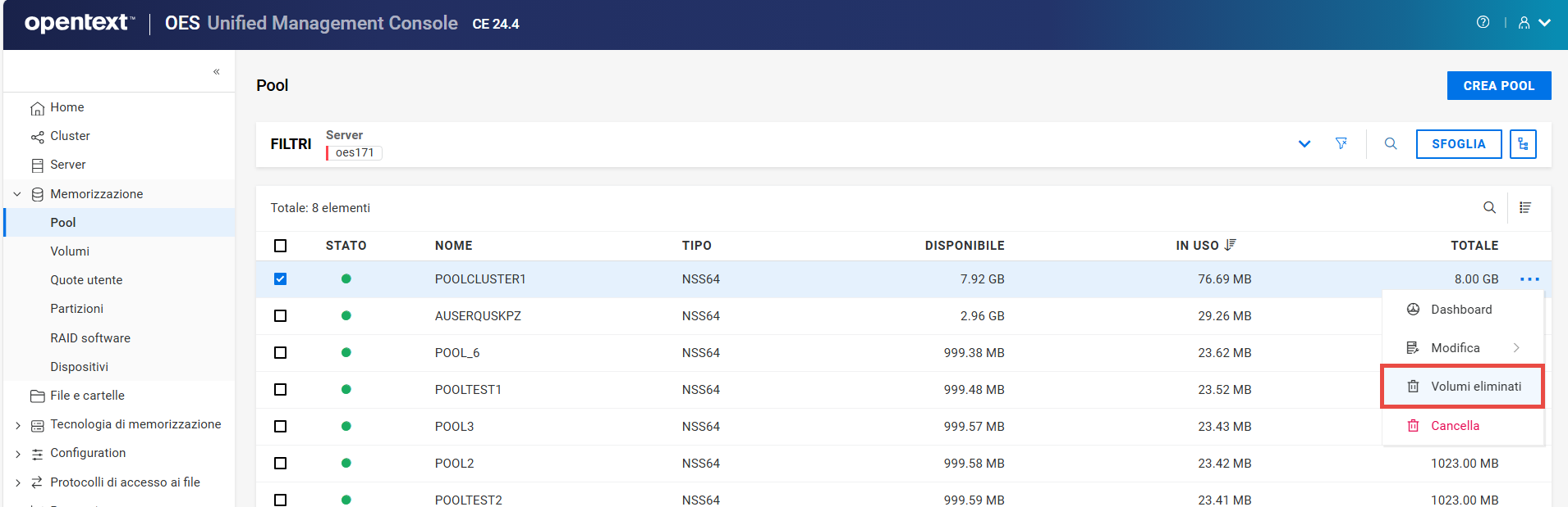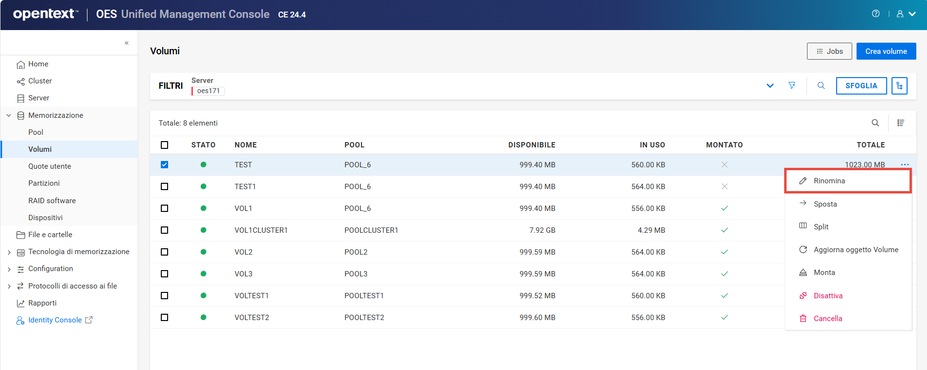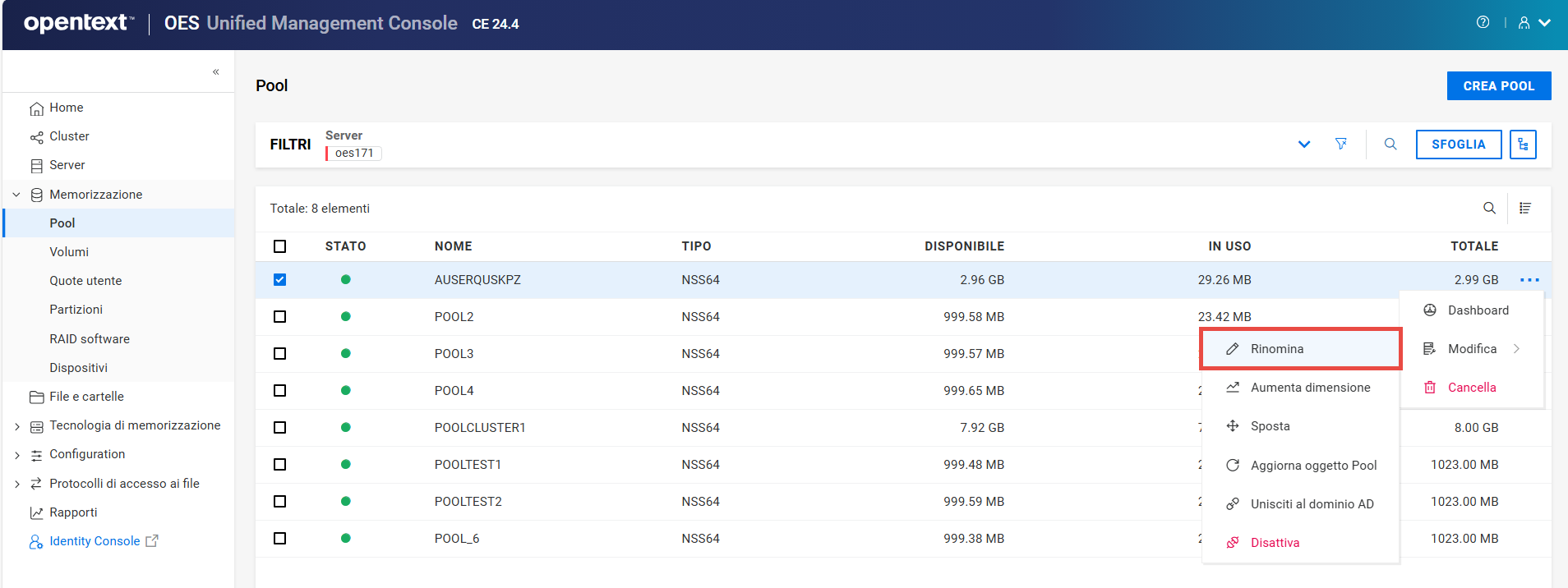 La ridenominazione di un pool o di un volume del cluster può risultare incoerente. Se dopo la ridenominazione non è possibile elencare i pool o i volumi, aprire UMC da un'altra finestra in modalità incognito.