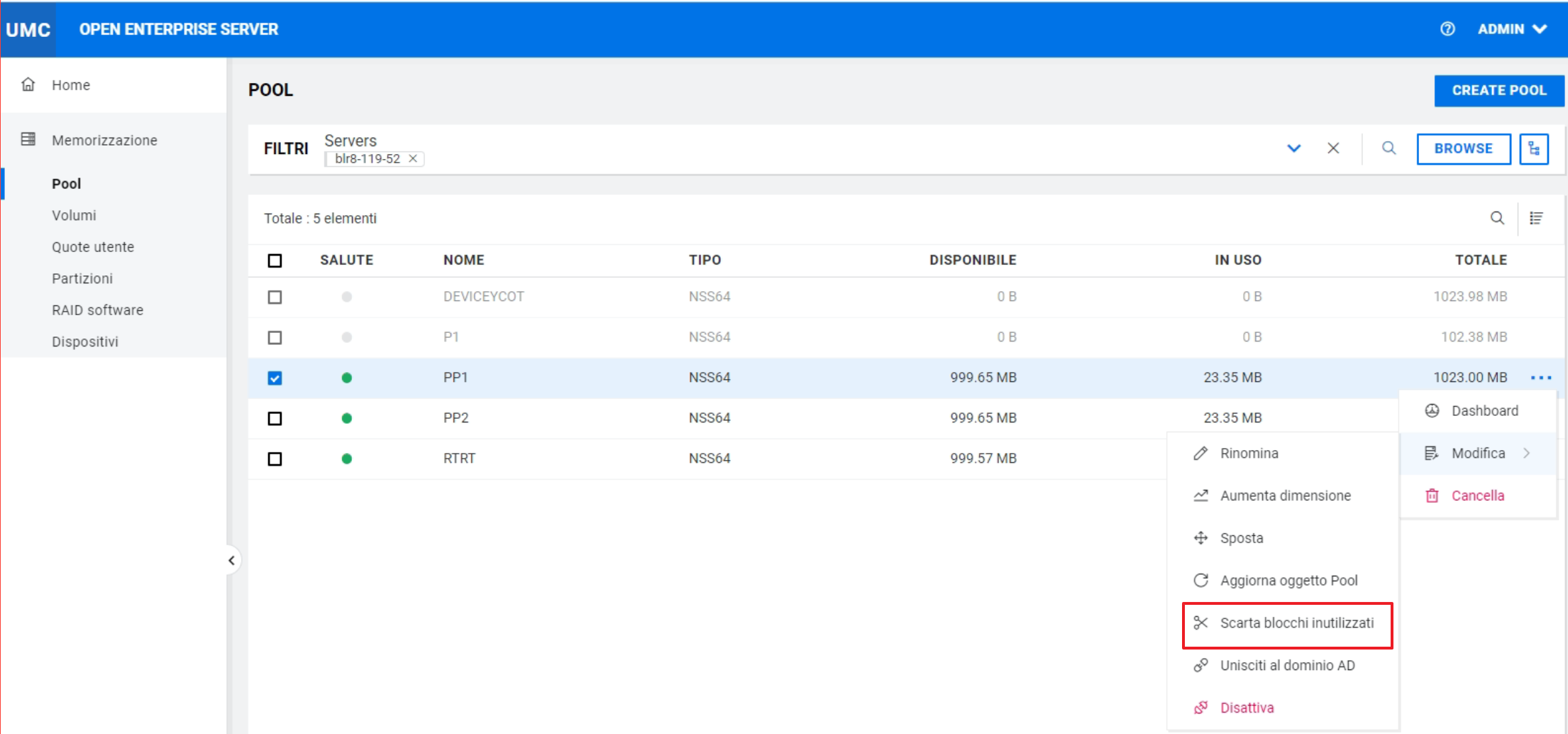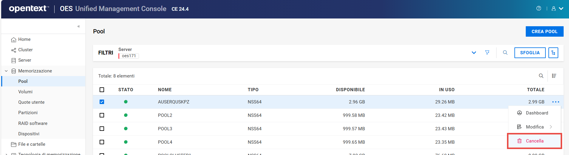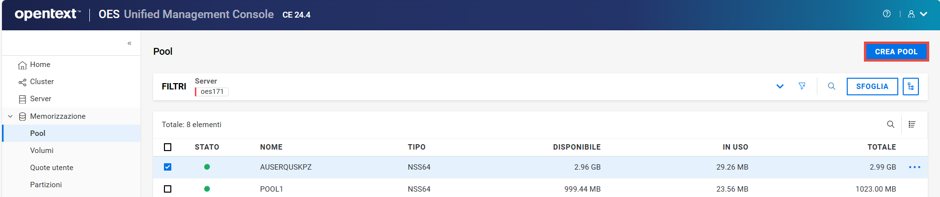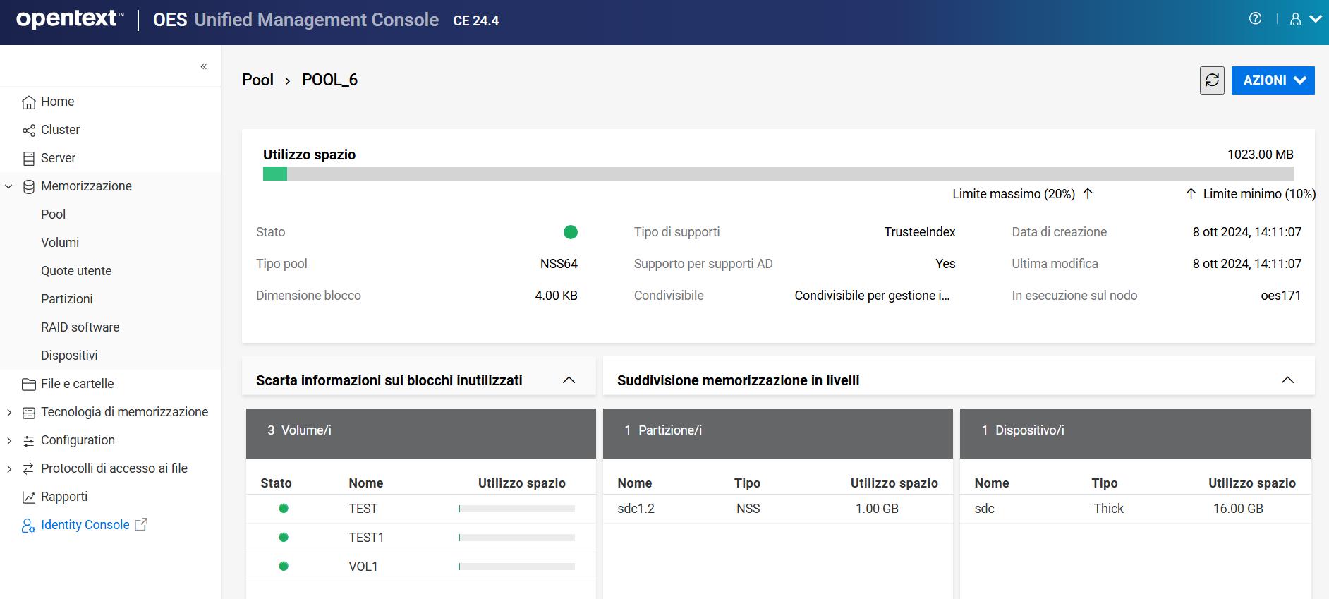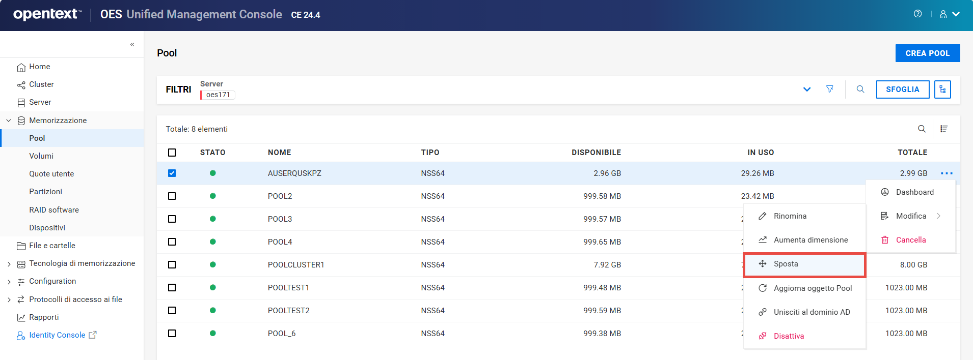 La ridenominazione di un pool o di un volume del cluster può risultare incoerente. Se dopo la ridenominazione non è possibile elencare i pool o i volumi, aprire UMC da un'altra finestra in modalità incognito.