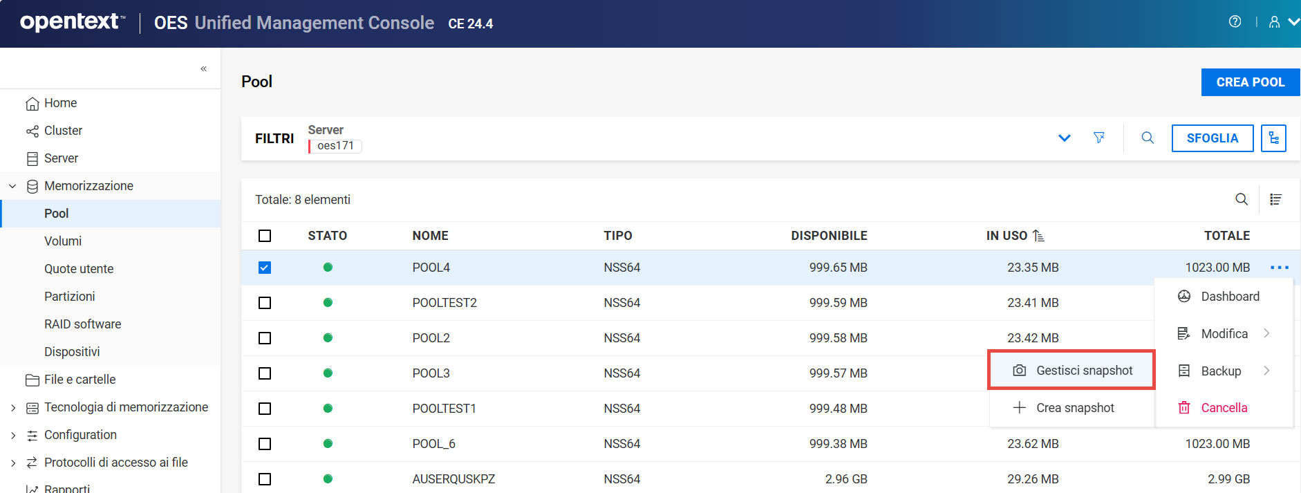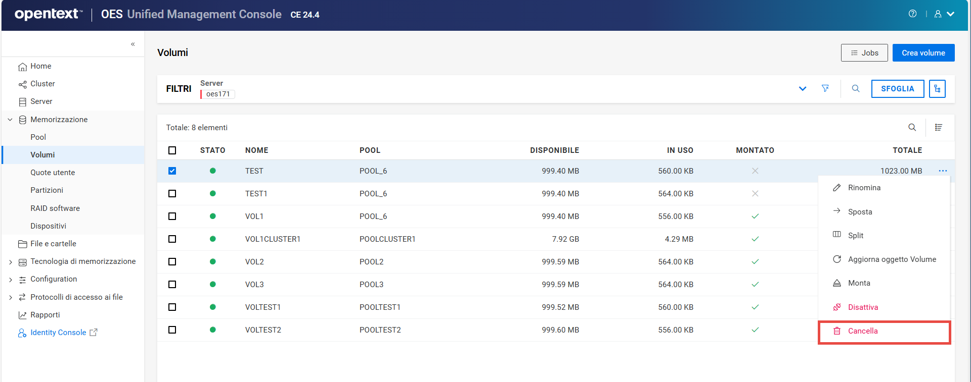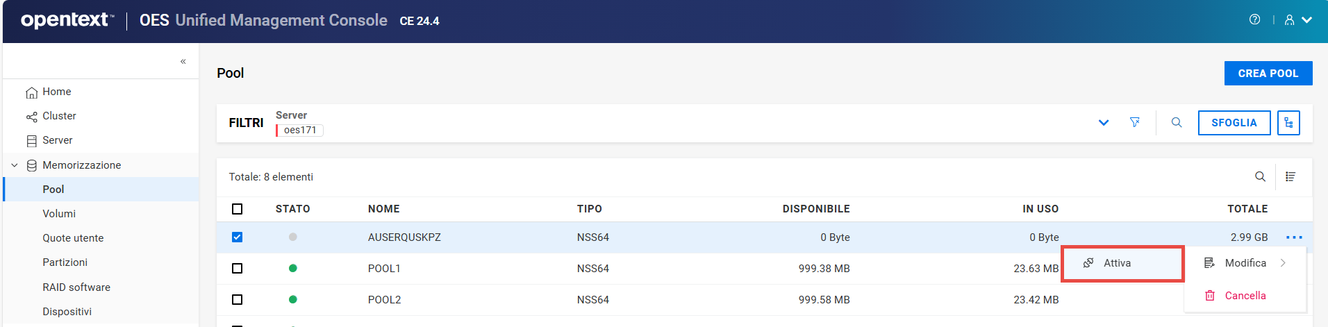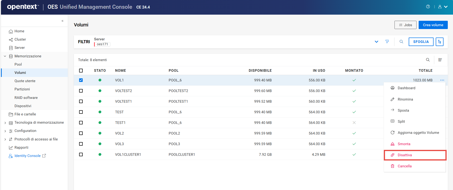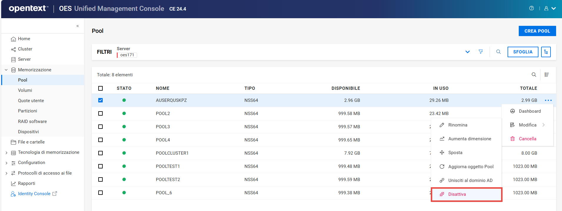 La ridenominazione di un pool o di un volume del cluster può risultare incoerente. Se dopo la ridenominazione non è possibile elencare i pool o i volumi, aprire UMC da un'altra finestra in modalità incognito.