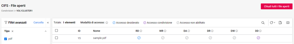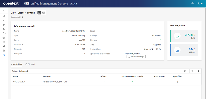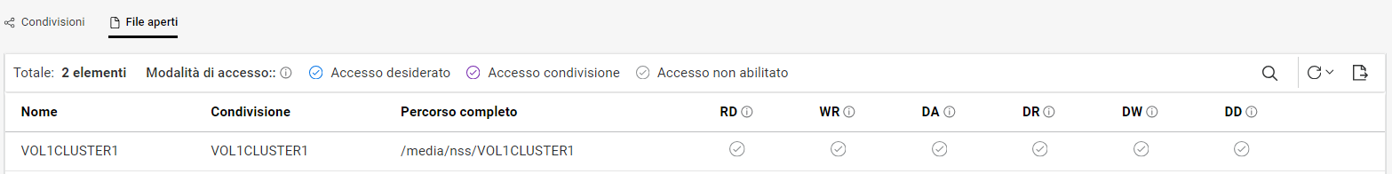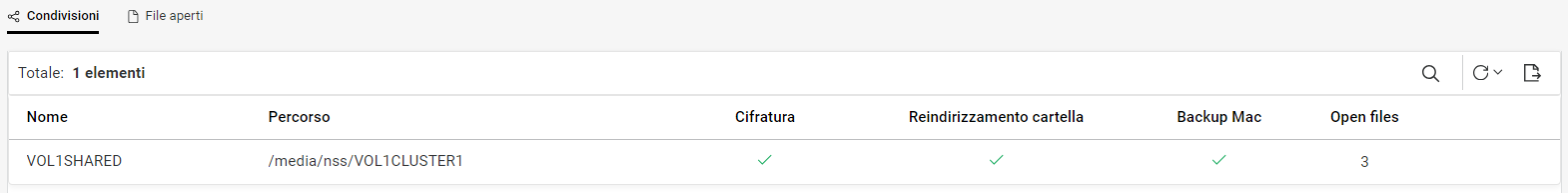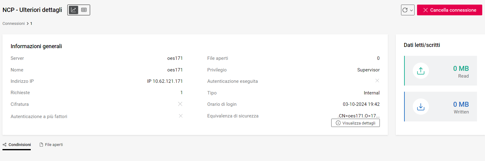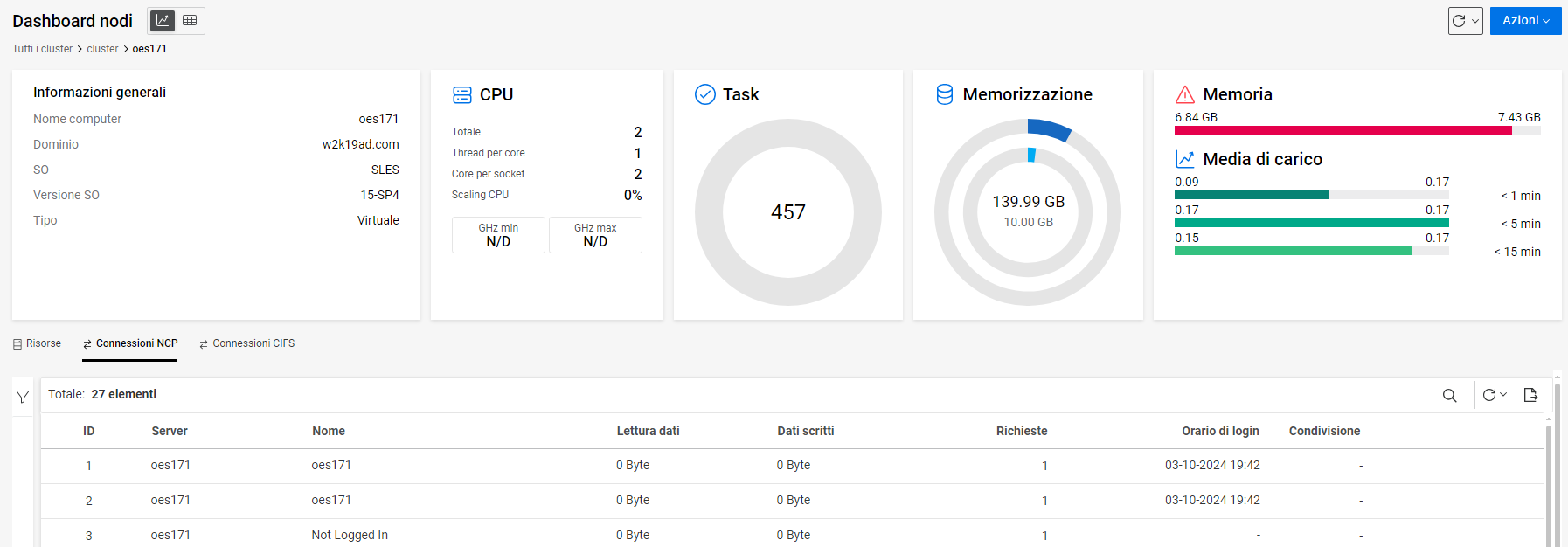Vista tabella: elenca le connessioni NCP e CIFS.
