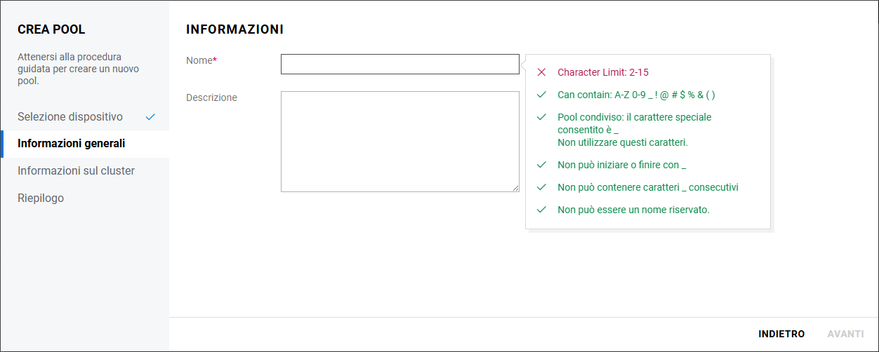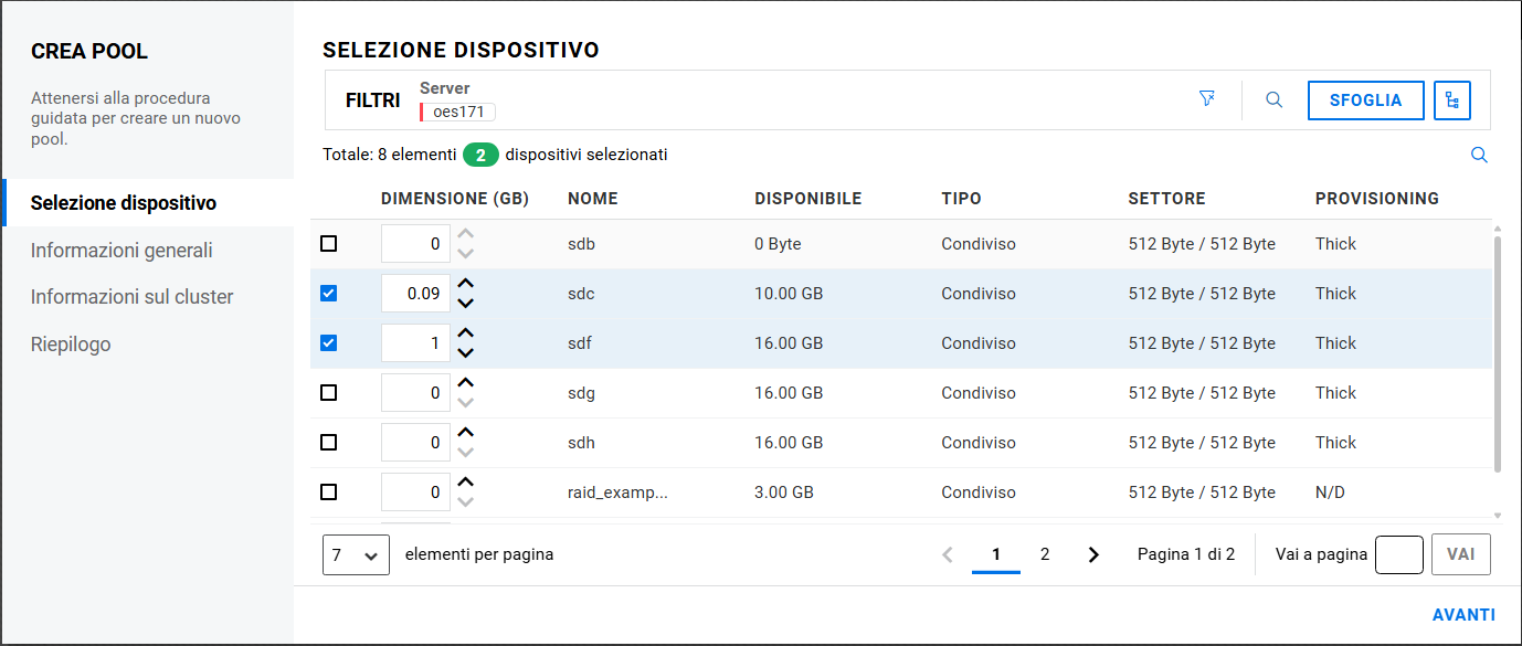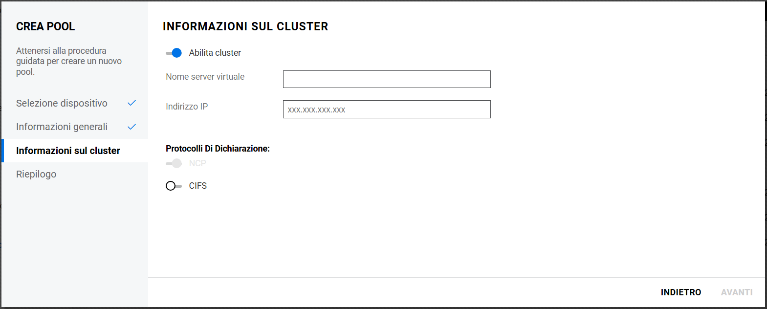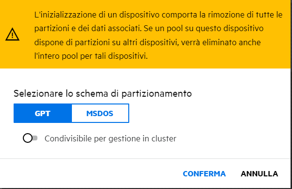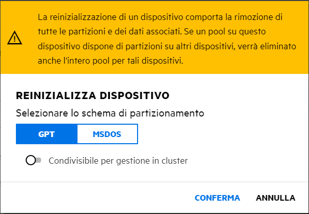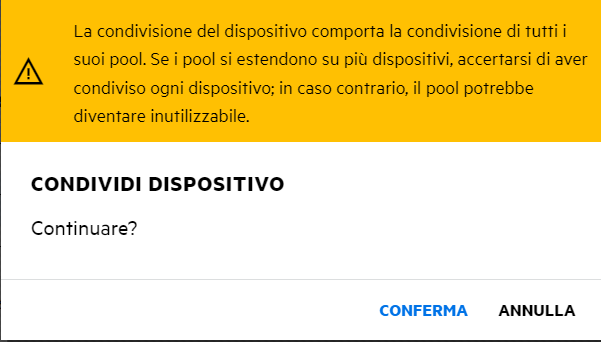 La creazione di un pool su un dispositivo condiviso non è consentita se la configurazione non è configurata per il cluster.