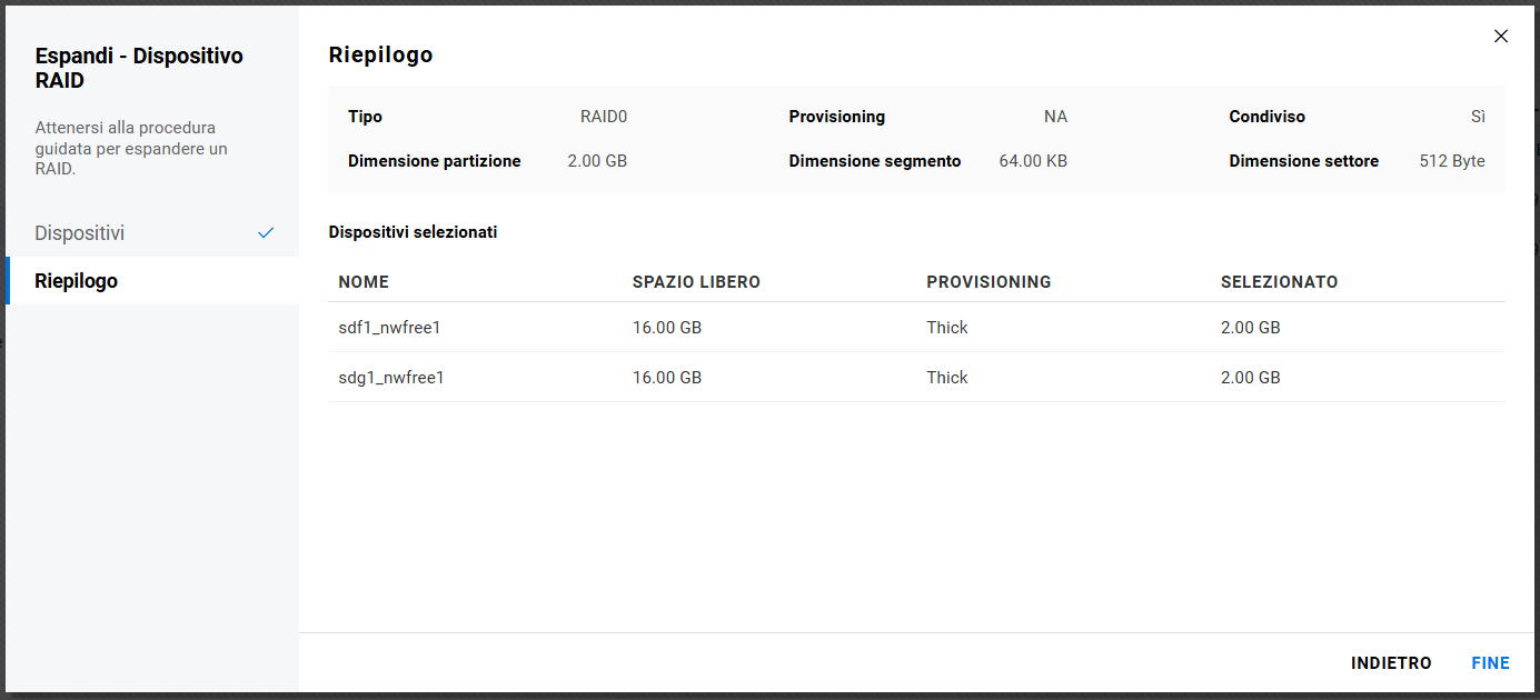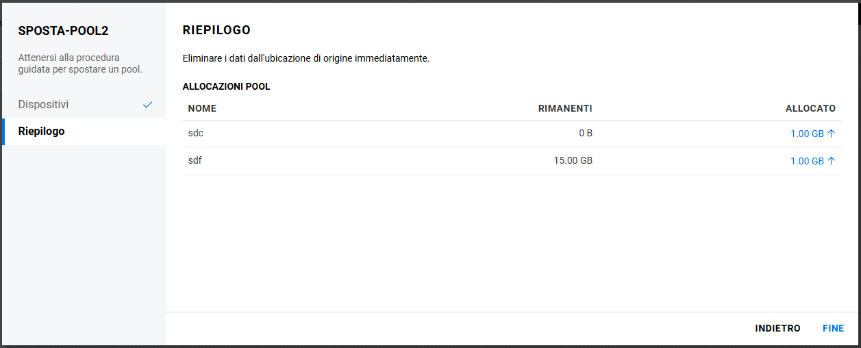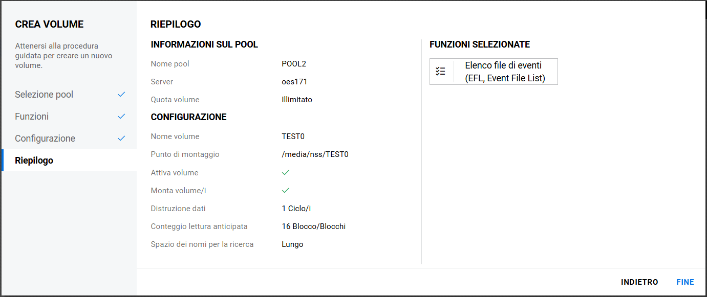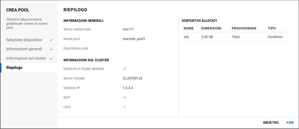 Nella pagina Riepilogo, verificare i container e i server e fare clic su Fine.