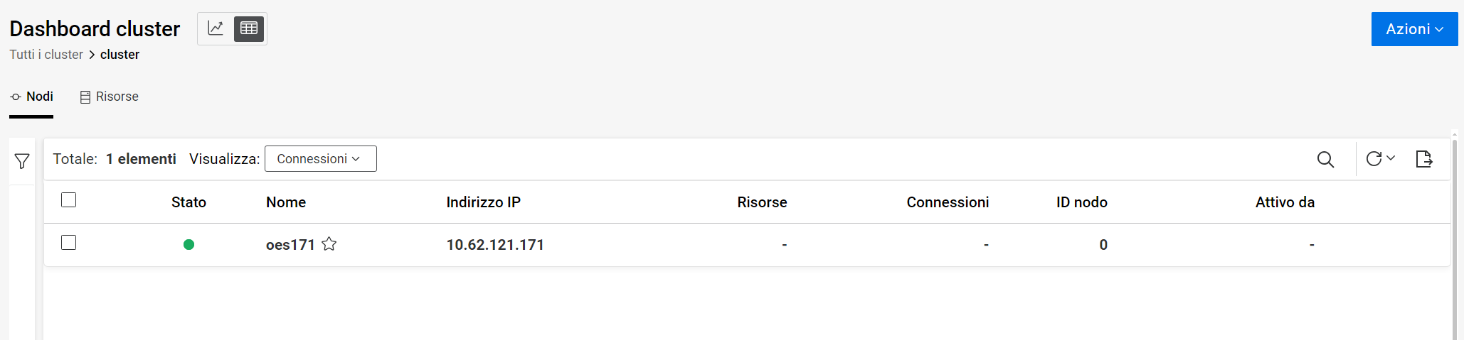 Nella pagina del dashboard cluster sono disponibili due viste: