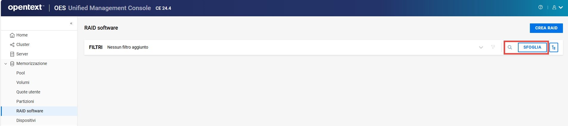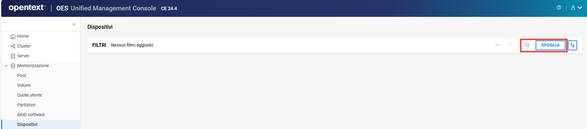 Durante il login iniziale, la pagina di elenco del cluster è vuota. Tuttavia, durante la ricerca, vengono elencati solo gli oggetti cluster grazie alla funzionalità di filtro avanzata che è in grado di riconoscere il contesto. I cluster selezionati vengono elencati nella pagina Cluster.