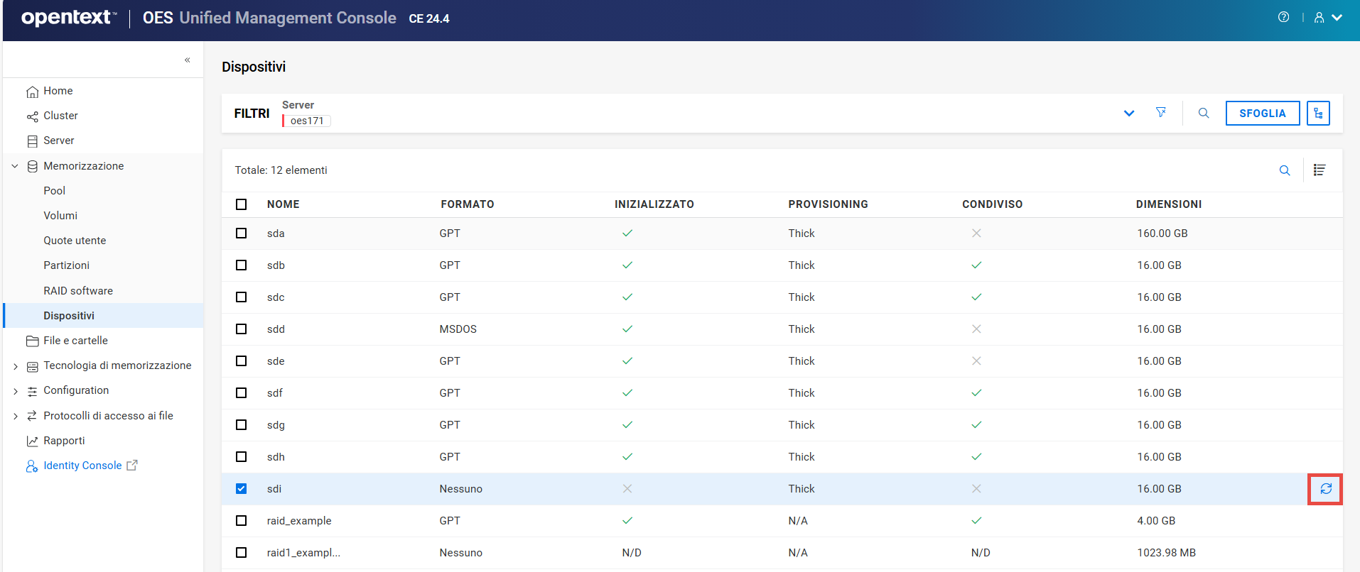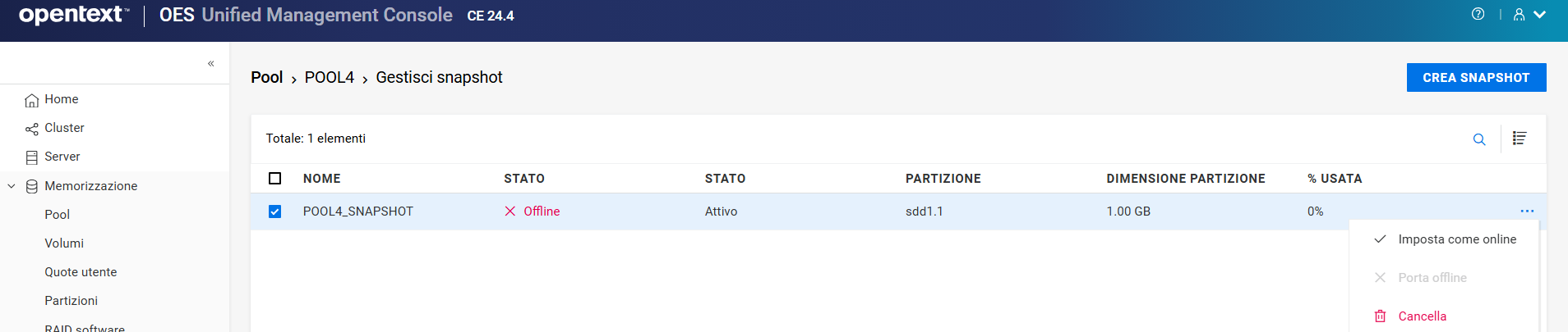 Dopo aver portato online e offline una risorsa, è necessario aggiornare manualmente la tabella delle risorse per visualizzare lo stato aggiornato.