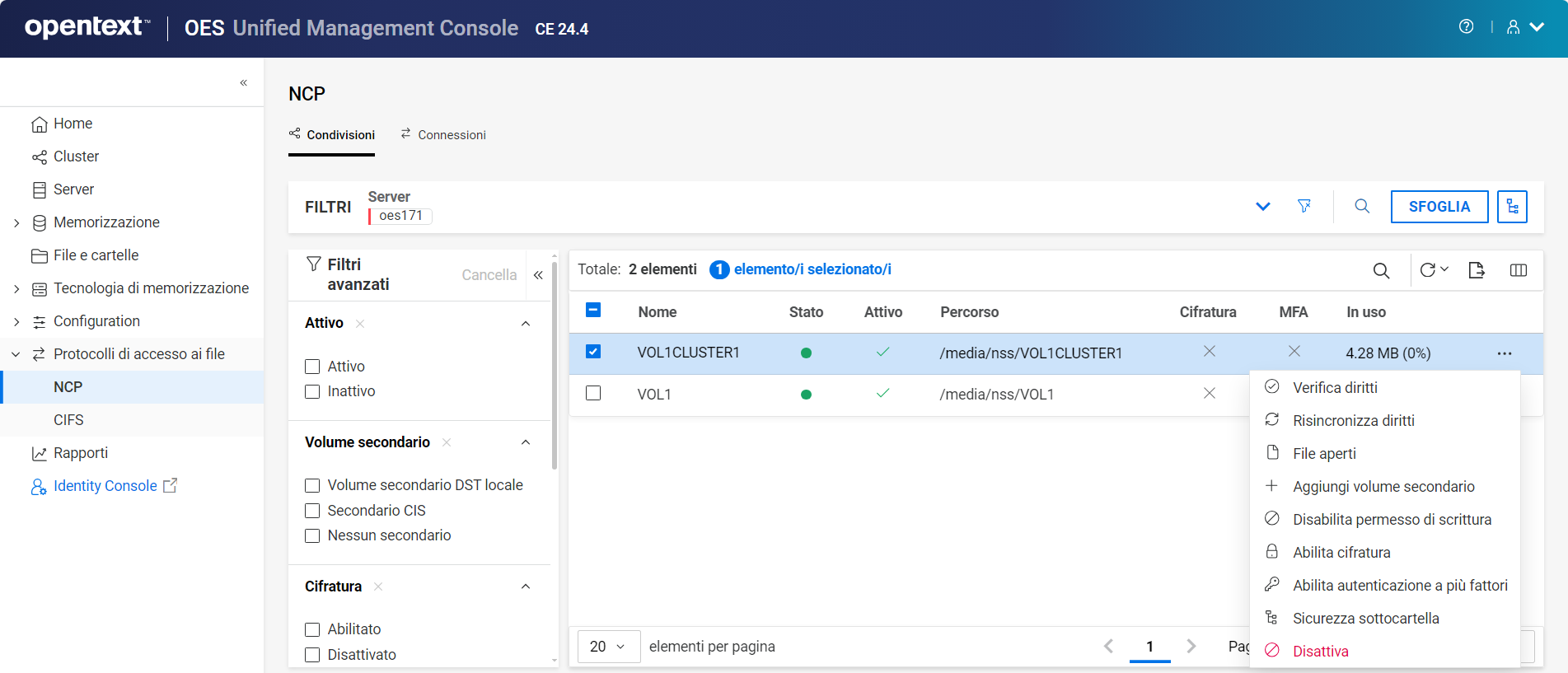 Le condivisioni o le connessioni NCP non sono elencate se uno dei server virtuali selezionati non è raggiungibile, è offline o è in stato di blocco imminente.