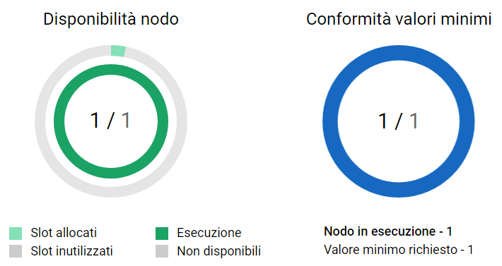 Conformità valori minimi: visualizza il numero di nodi necessari per soddisfare i valori minimi e il numero di nodi in esecuzione.