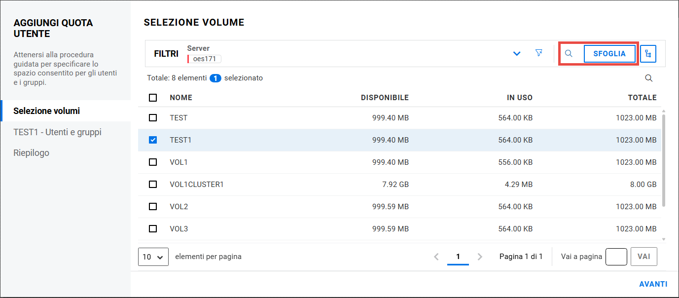 Nella pagina Container, sfogliare il server per selezionare i container e fare clic su Avanti.