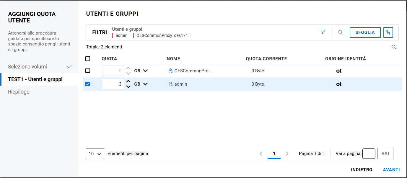 Il contesto utente viene aggiunto all'elenco. È possibile aggiungere più contesti contemporaneamente.
