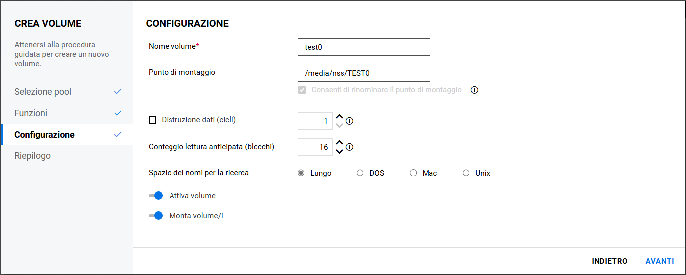Prima di creare un volume, eseguire /PoolMediaUpgrade=pool_name /MediaType=AES dalla console NSS.
