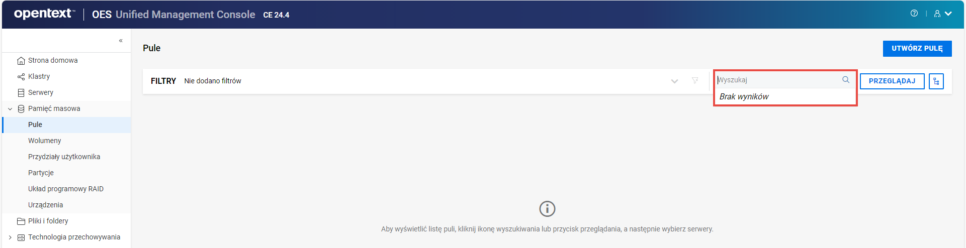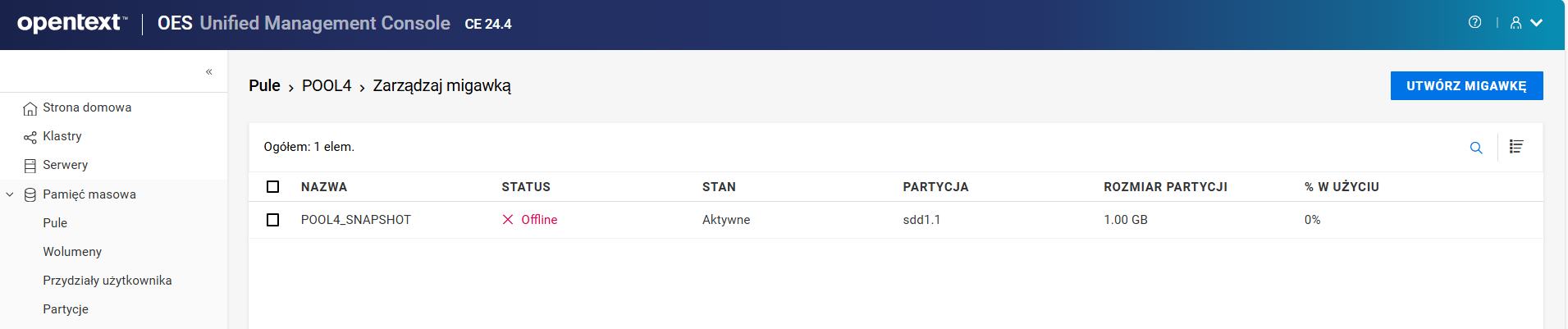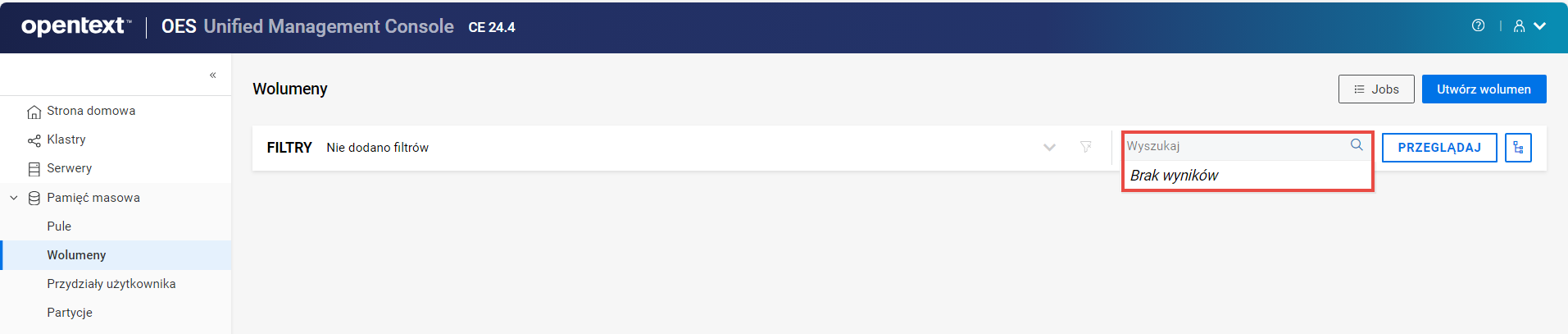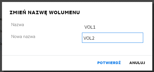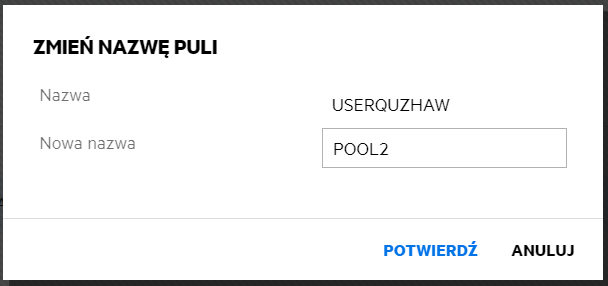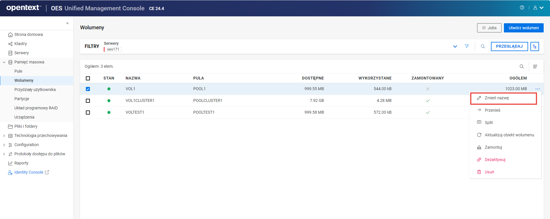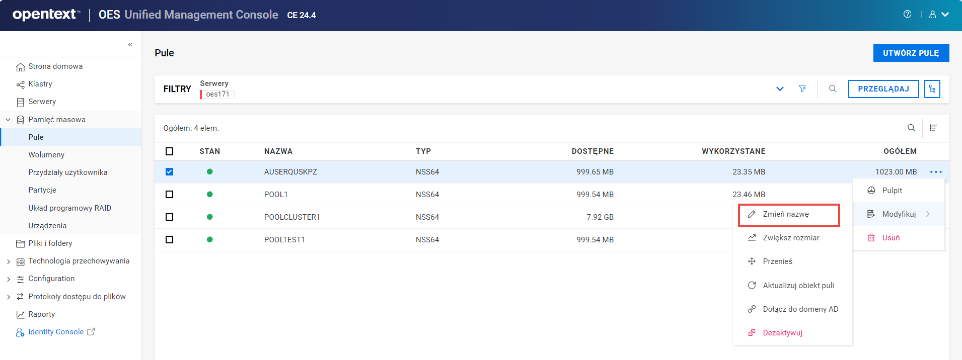 Zmiana nazwy puli klastra lub wolumenu może powodować niespójne zachowanie. Jeśli po zmianie nazwy nie możesz utworzyć listy puli lub wolumenów, otwórz konsolę UMC z innego okna w trybie incognito.