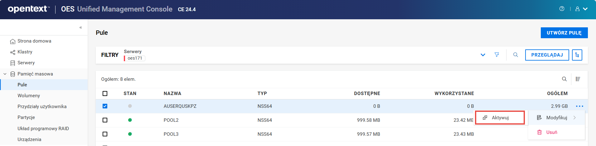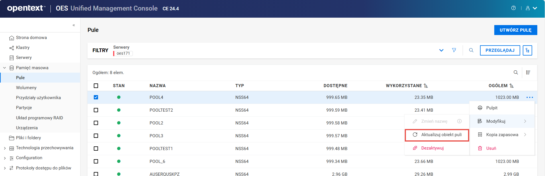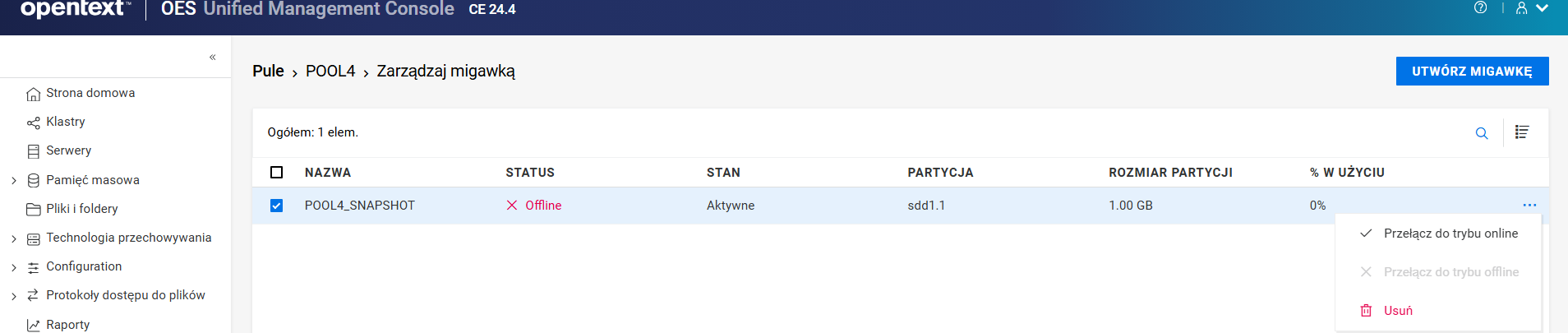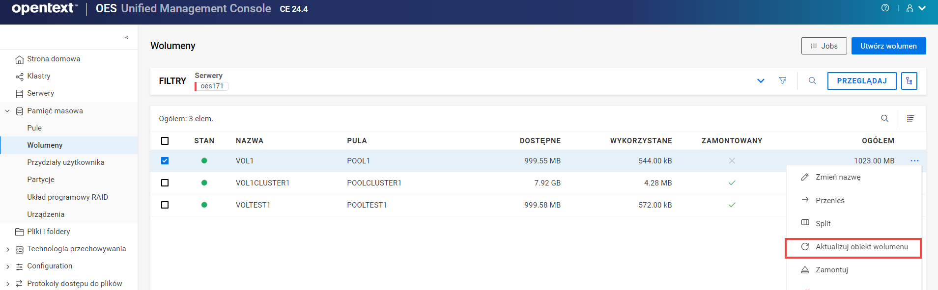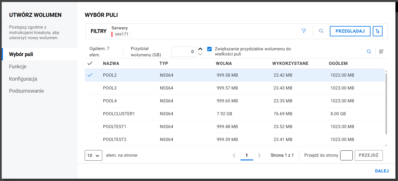 Zmiana nazwy puli klastra lub wolumenu może powodować niespójne zachowanie. Jeśli po zmianie nazwy nie możesz utworzyć listy puli lub wolumenów, otwórz konsolę UMC z innego okna w trybie incognito.