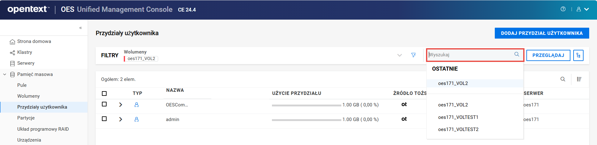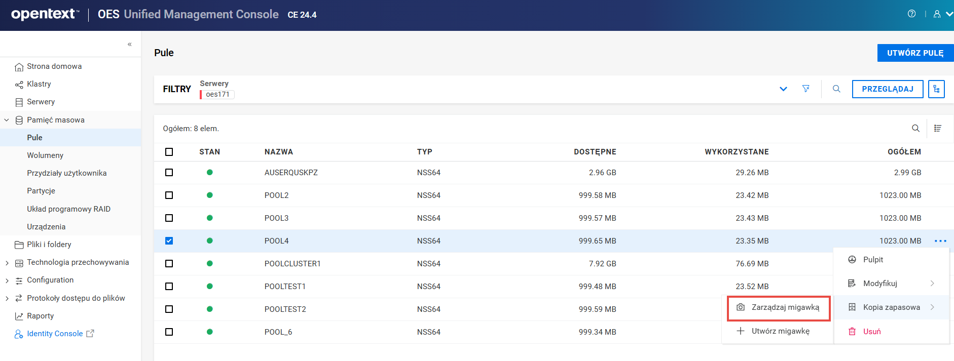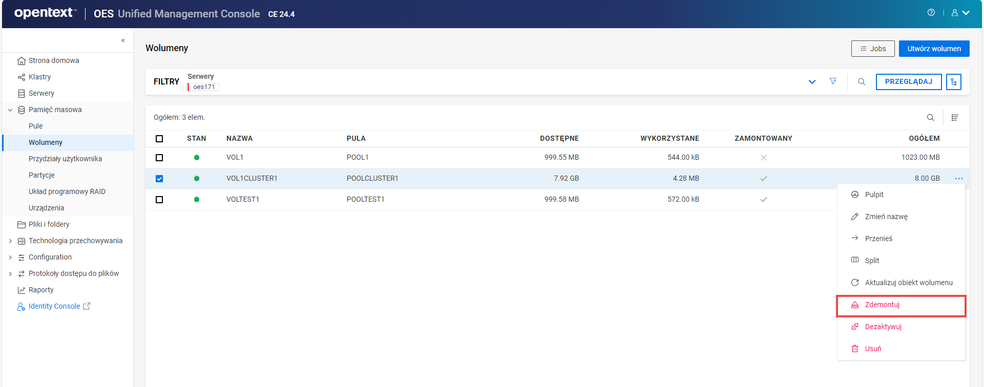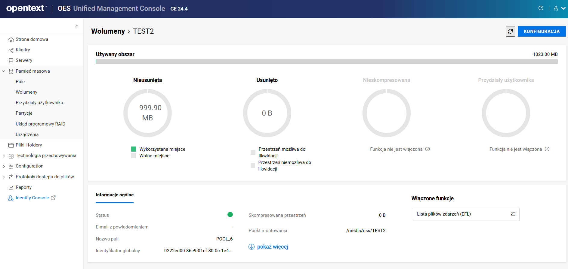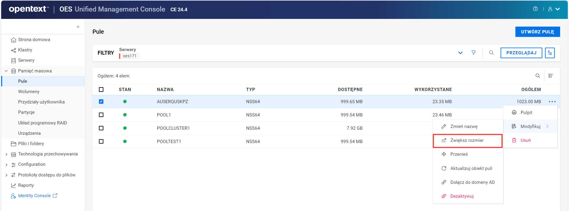 Zmiana nazwy puli klastra lub wolumenu może powodować niespójne zachowanie. Jeśli po zmianie nazwy nie możesz utworzyć listy puli lub wolumenów, otwórz konsolę UMC z innego okna w trybie incognito.