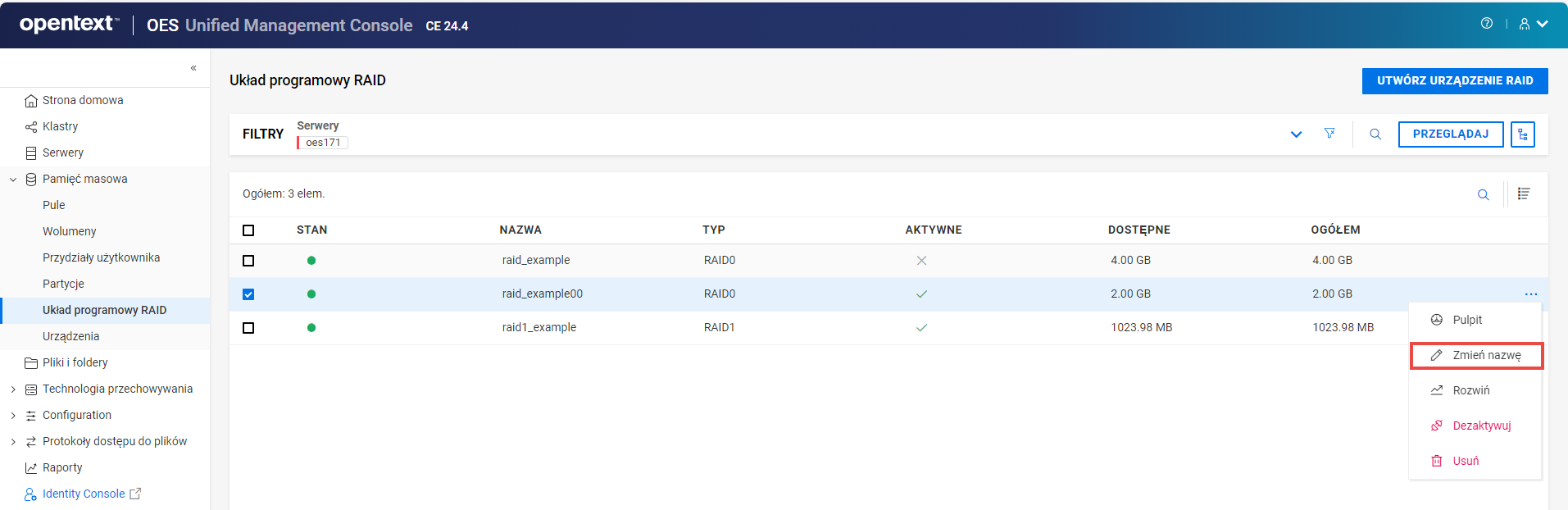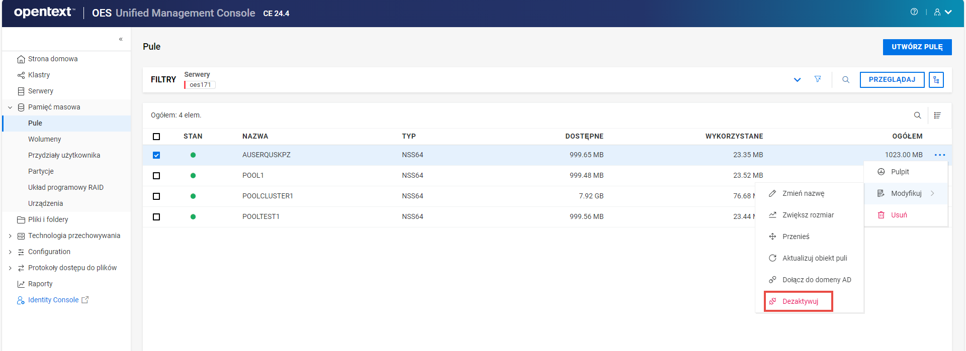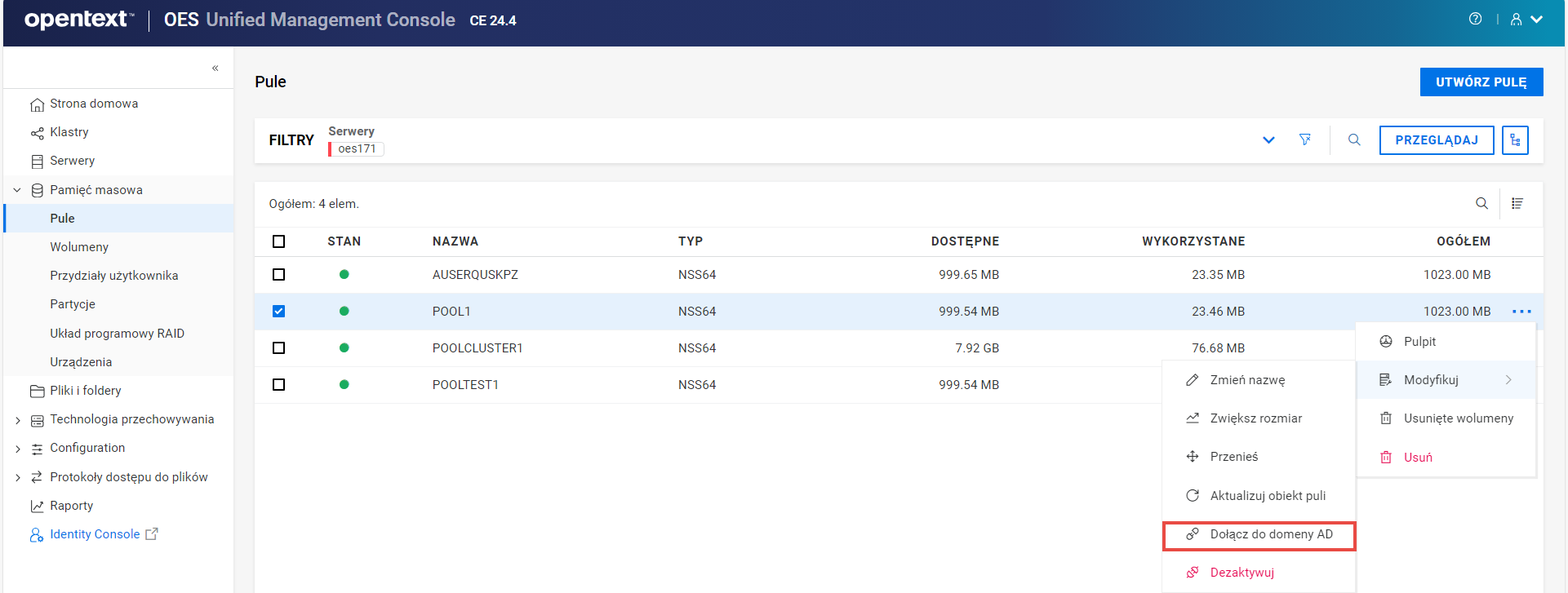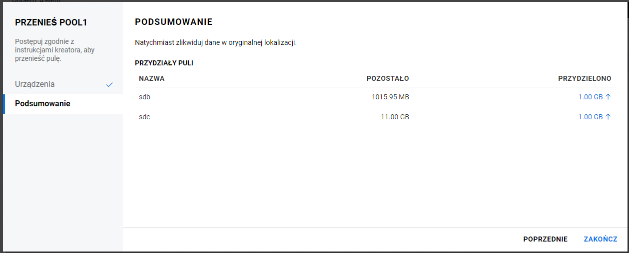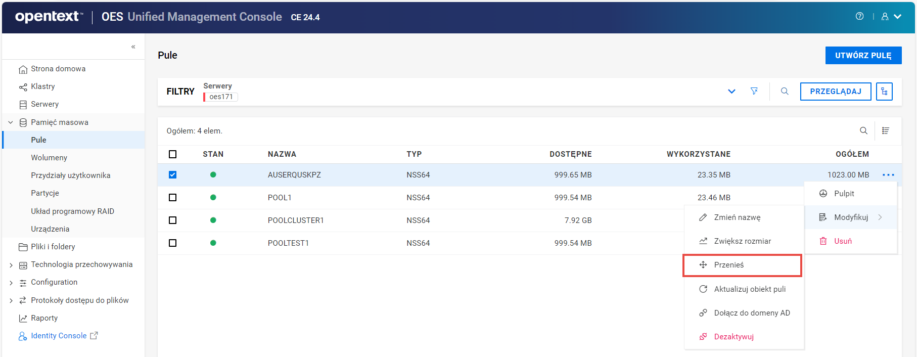 Zmiana nazwy puli klastra lub wolumenu może powodować niespójne zachowanie. Jeśli po zmianie nazwy nie możesz utworzyć listy puli lub wolumenów, otwórz konsolę UMC z innego okna w trybie incognito.