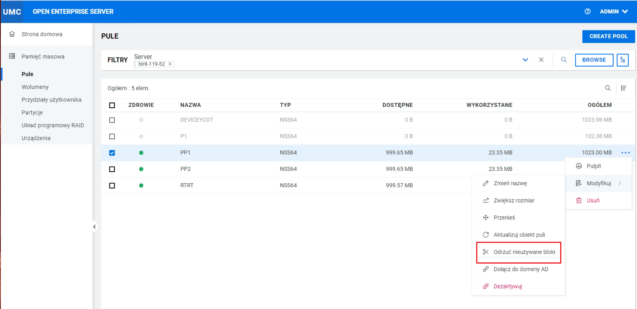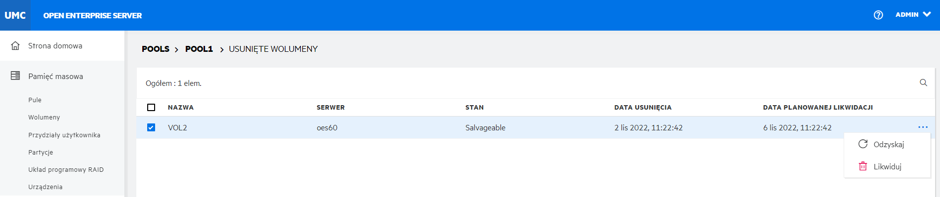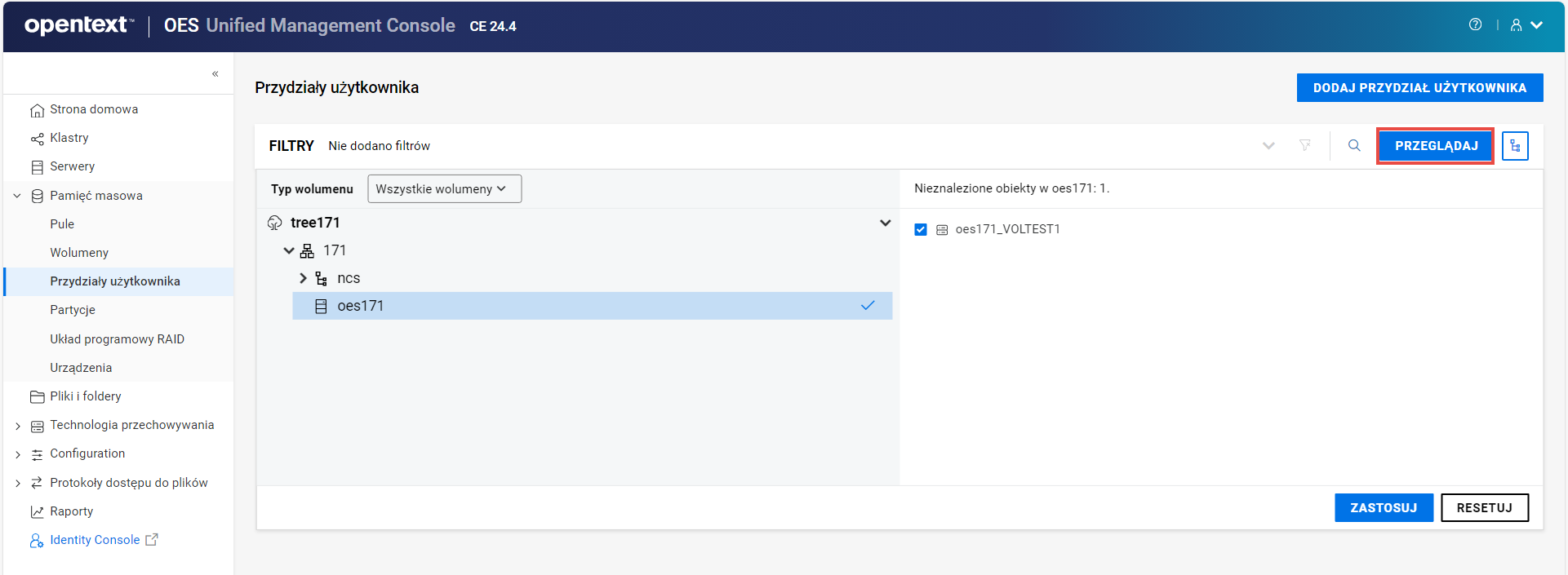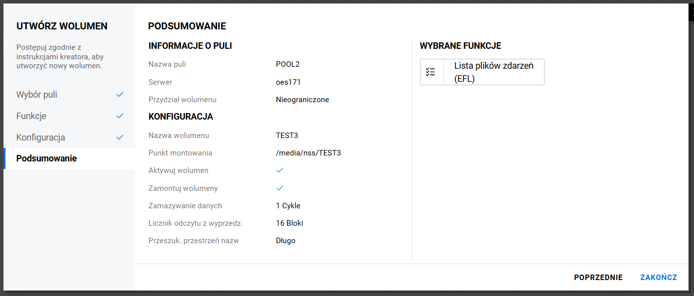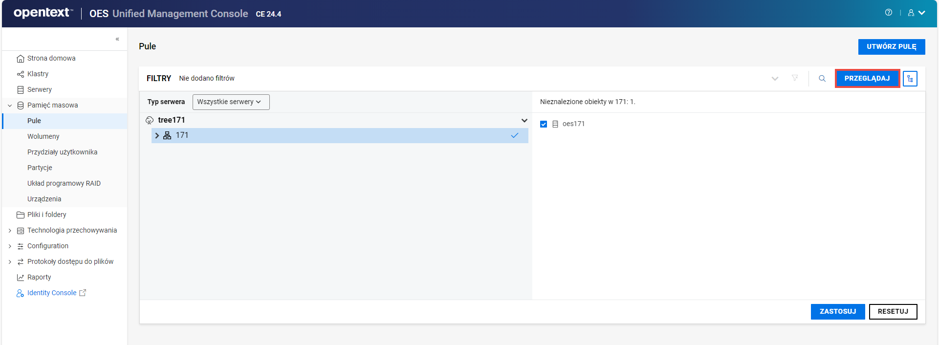 Zmiana nazwy puli klastra lub wolumenu może powodować niespójne zachowanie. Jeśli po zmianie nazwy nie możesz utworzyć listy puli lub wolumenów, otwórz konsolę UMC z innego okna w trybie incognito.