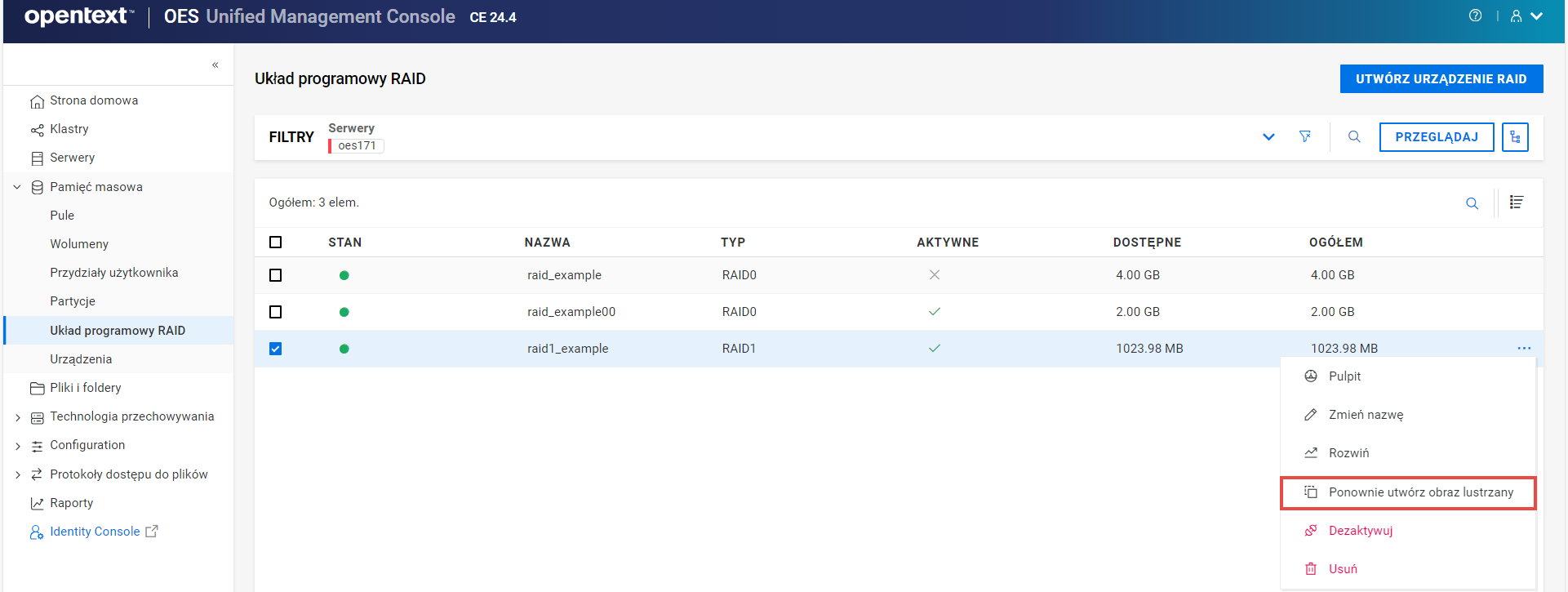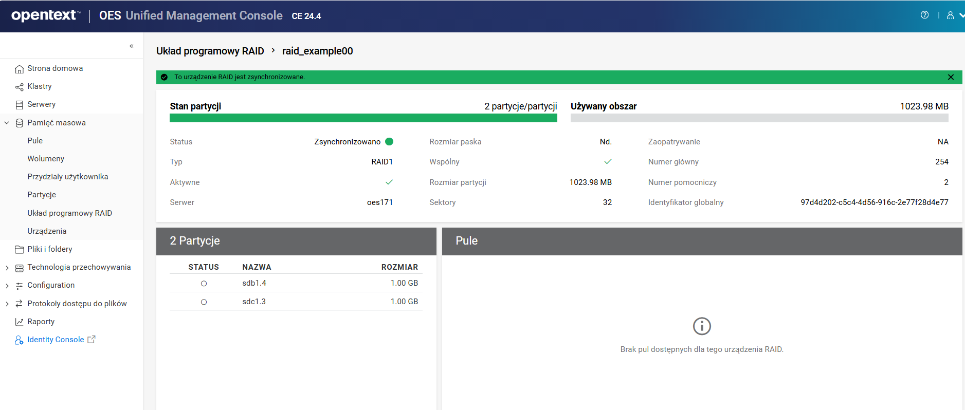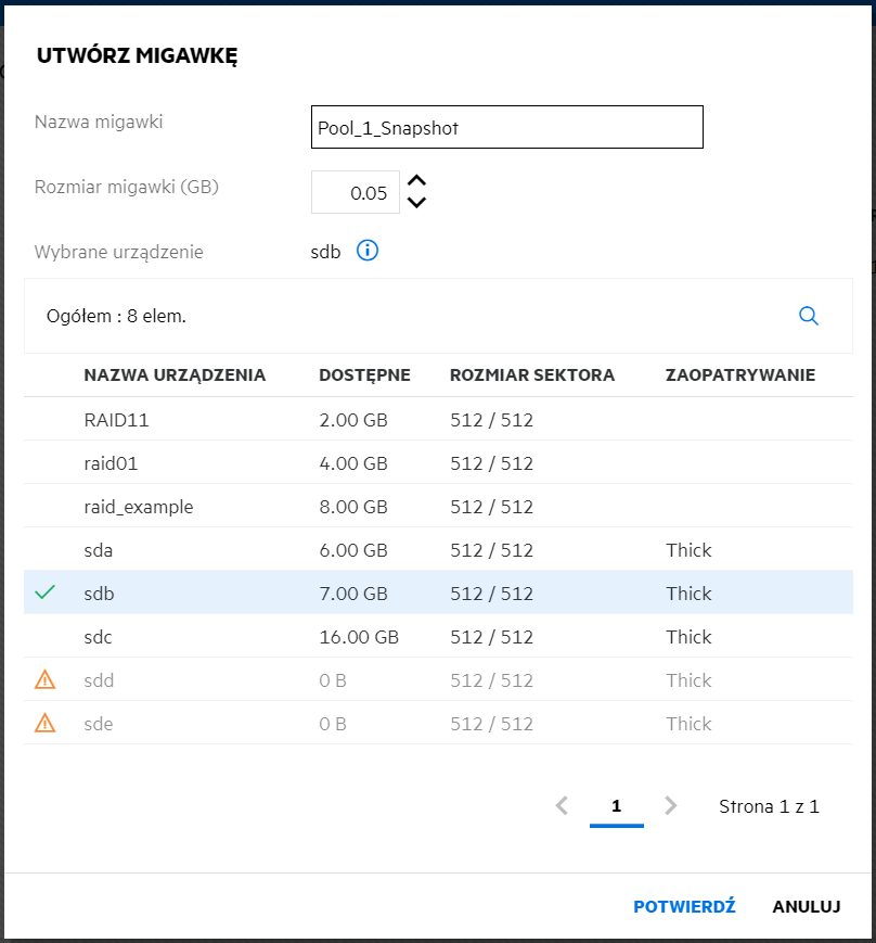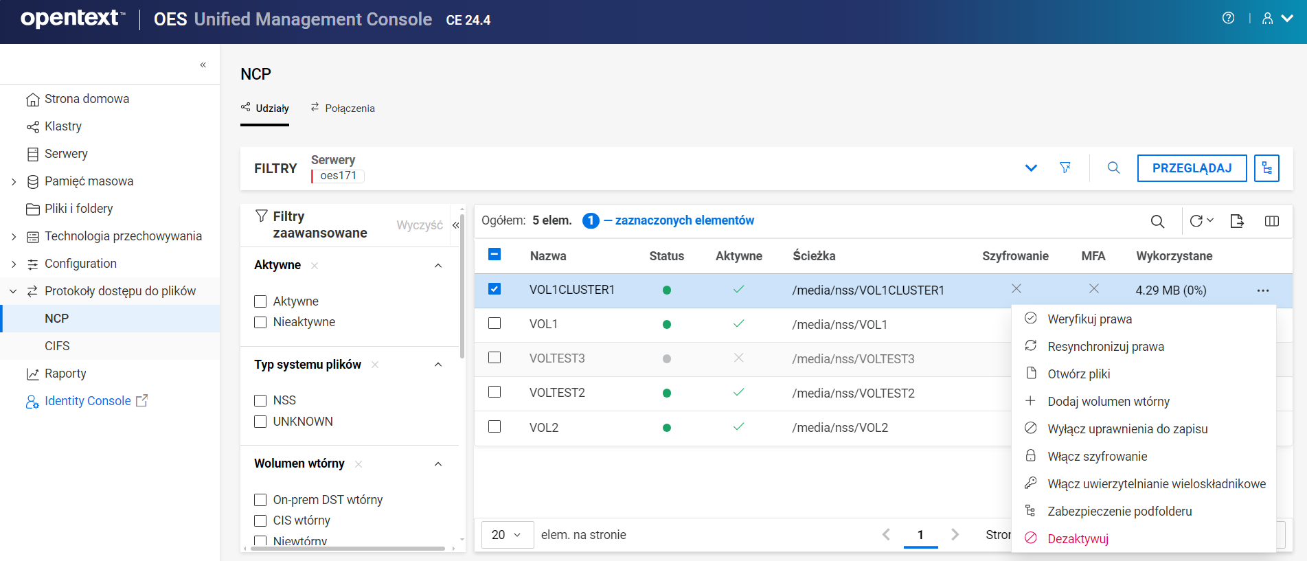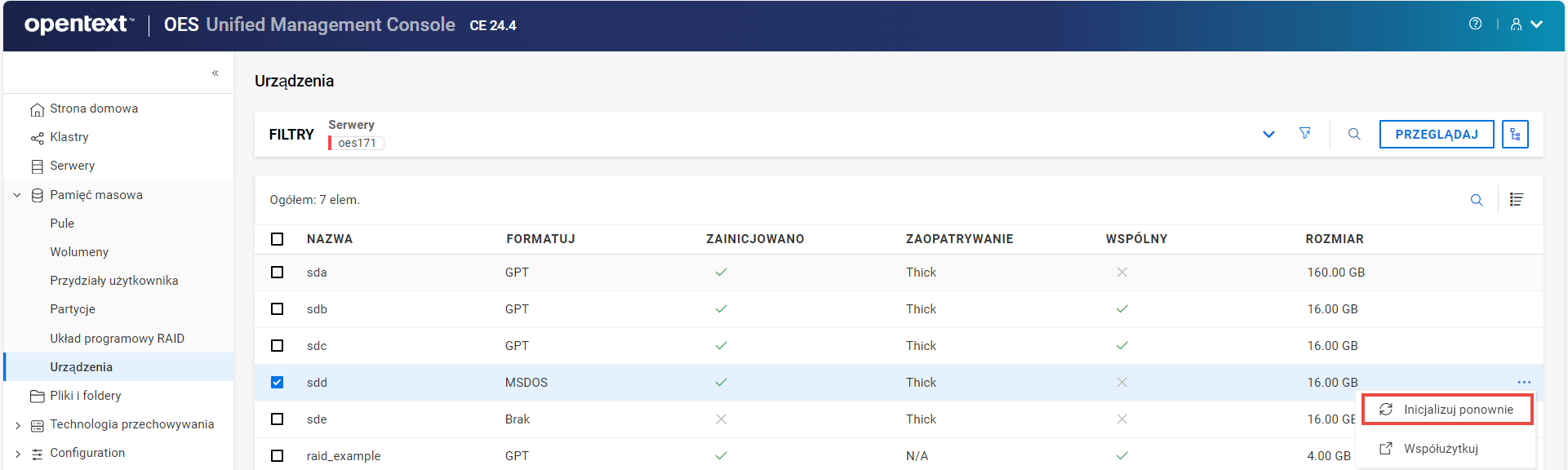 Zmiana nazwy puli klastra lub wolumenu może powodować niespójne zachowanie. Jeśli po zmianie nazwy nie możesz utworzyć listy puli lub wolumenów, otwórz konsolę UMC z innego okna w trybie incognito.