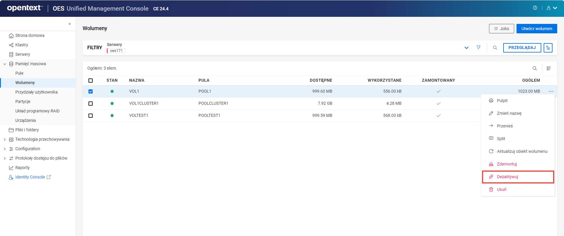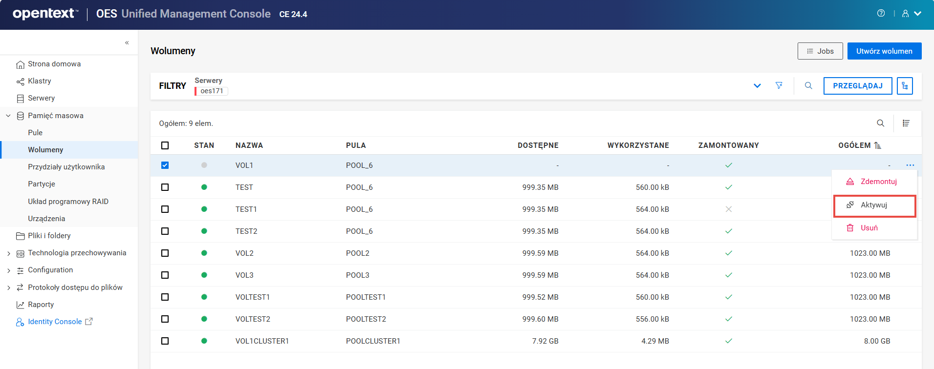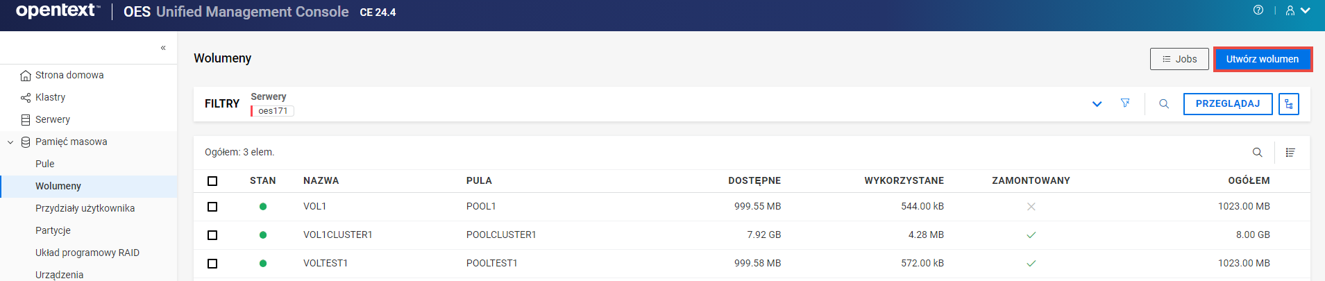 Aby uzyskać więcej informacji, zobacz Sekcja 7.0, Zarządzanie zadaniami dotyczącymi wolumenów.