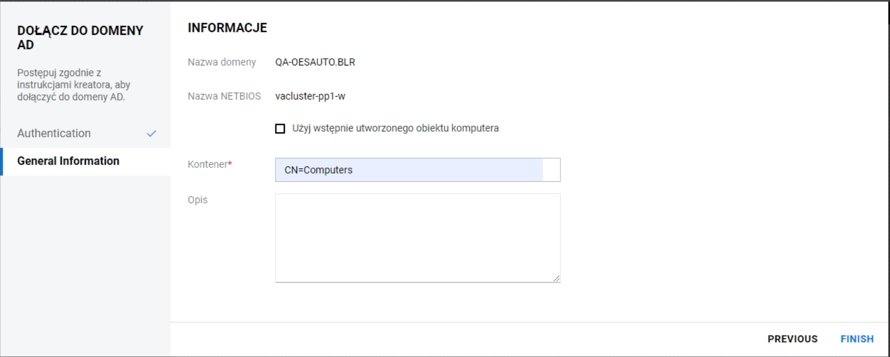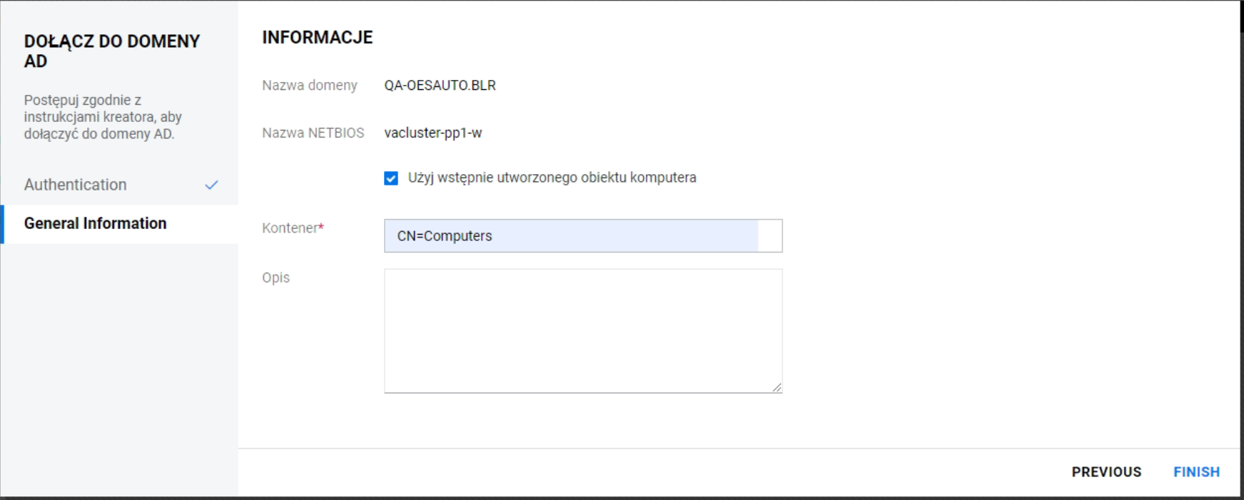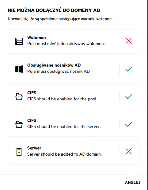 Jeśli obiekt puli już istnieje, dołączenie puli do domeny AD nie powiedzie się. Wyczyść obiekt w usłudze Active Directory i spróbuj ponownie.