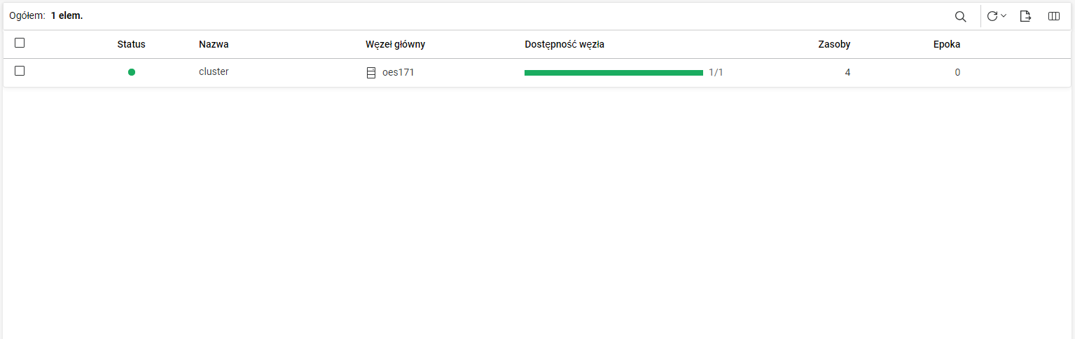 Na pulpicie dotyczącym klastrów wyświetlane są następujące informacje: