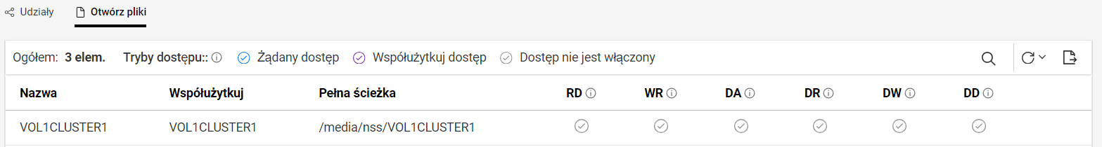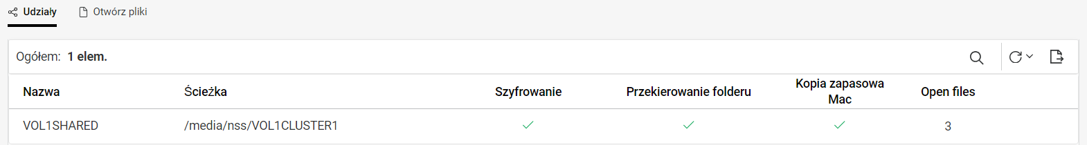 Widok tabeli: Lista połączeń NCP i CIFS.
