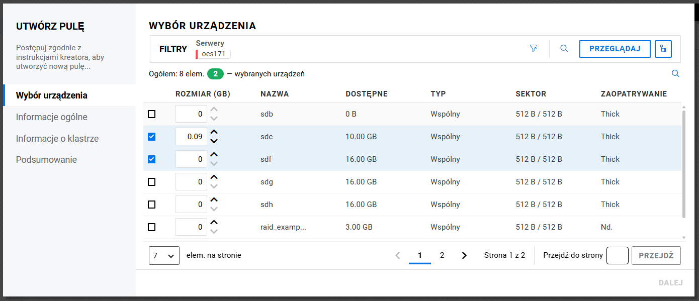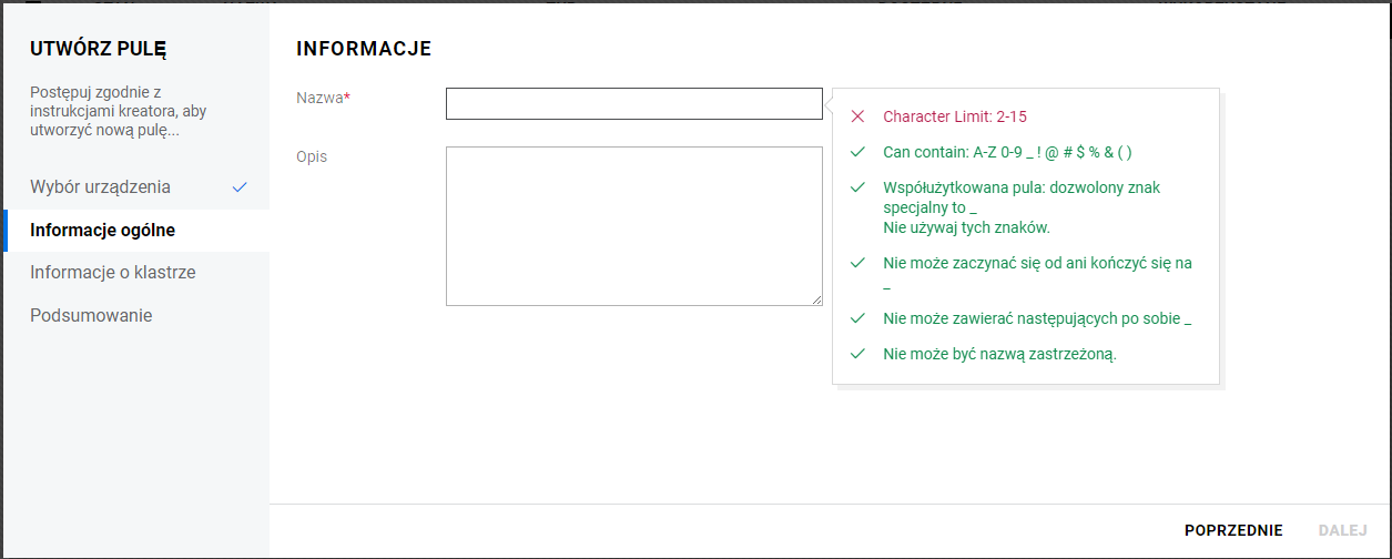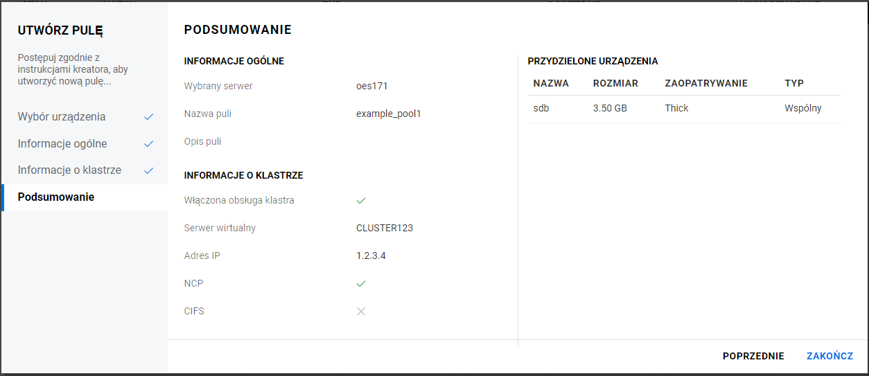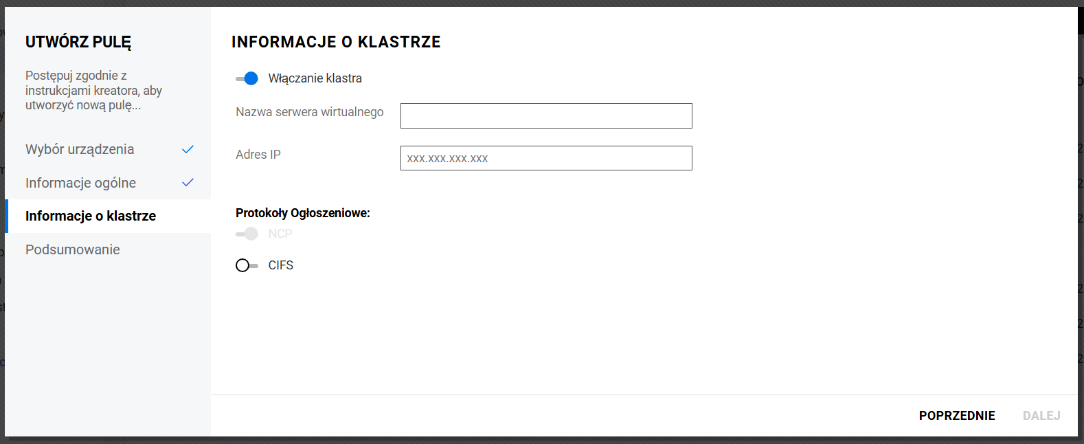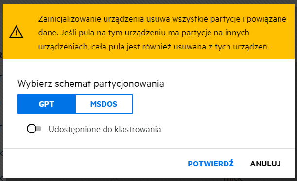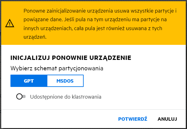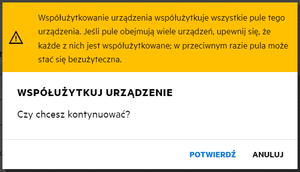 Tworzenie puli na urządzeniu współdzielonym nie jest dozwolone, jeśli konfiguracja nie jest skonfigurowana w klastrze.