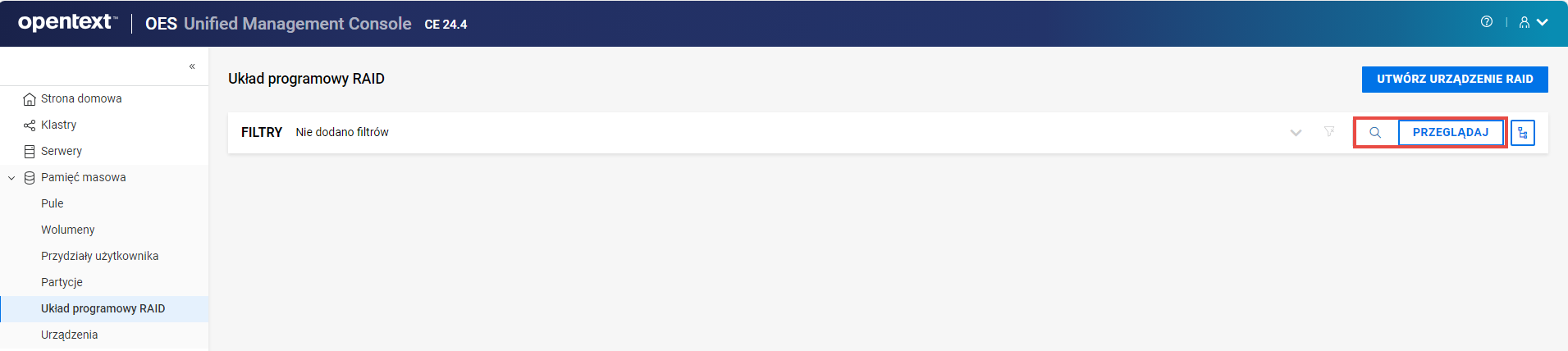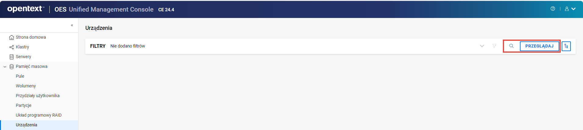 Podczas początkowego logowania strona z listą klastrów jest pusta. Jednak w miarę przeglądania przedstawiane są na niej tylko obiekty klastrów na skutek działania ulepszonej i opartej na kontekście funkcji filtrowania. Lista wybranych klastrów jest dostępna na stronie Klastry.