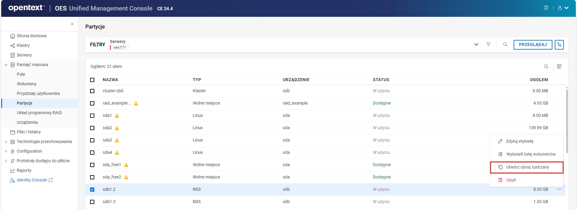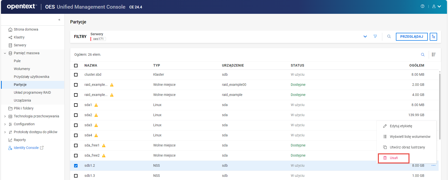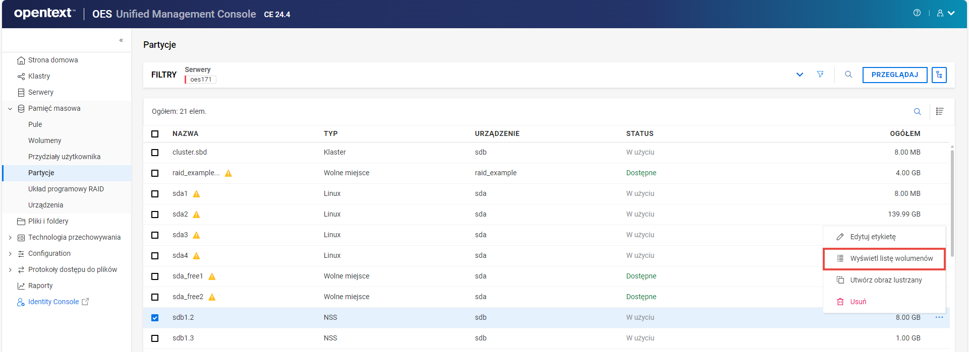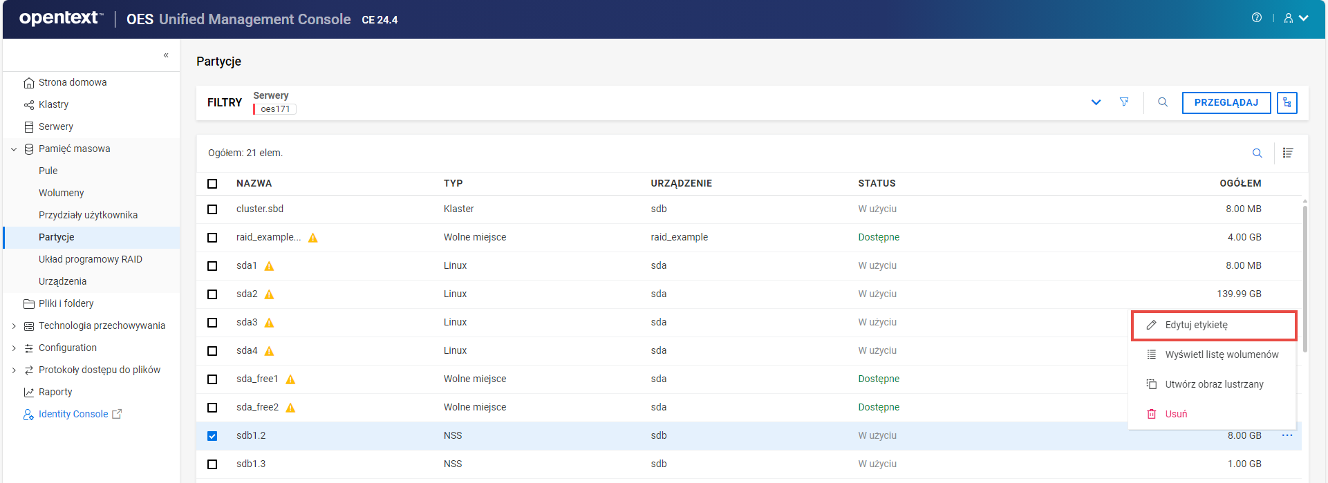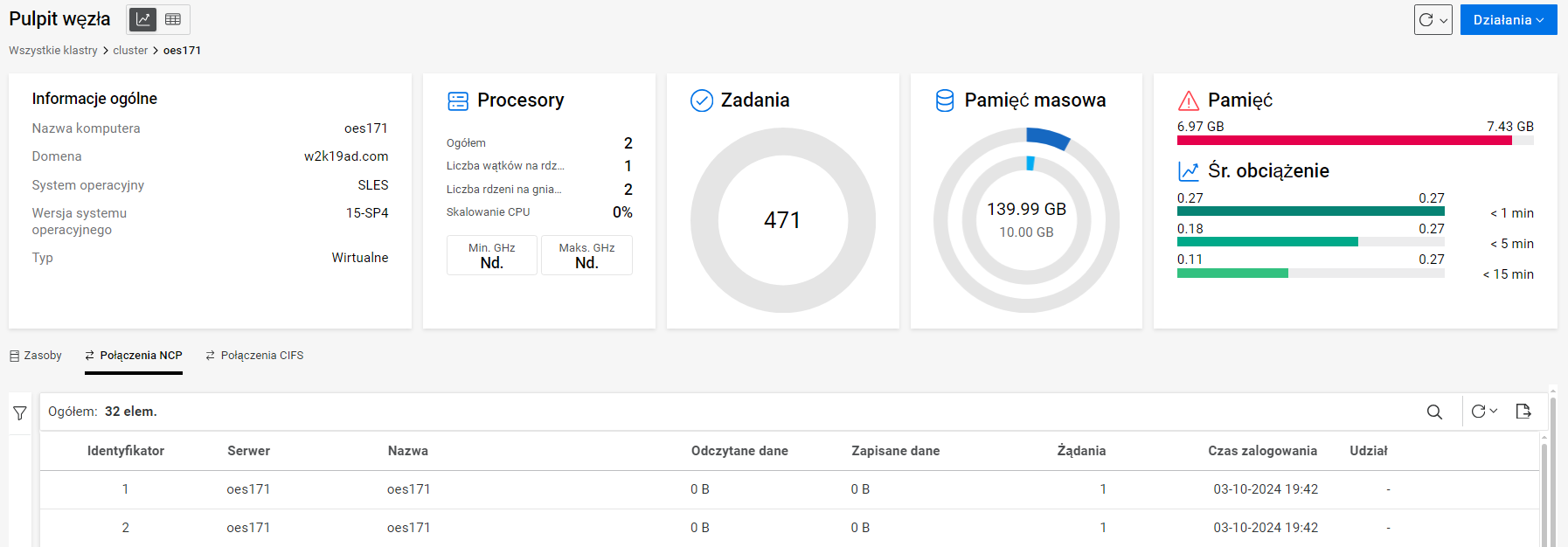 Jeśli sprawny klaster ma stan Nieczynny lub Nieznany, zwiększ wartość limitu czasu CLUSTER_LISTING_FAILURE_TIMEOUT = 2000 w pliku /opt/novell/umc/apps/umc-server/prod.env. Wartość domyślna do 2000 ms, a ze względu na opóźnienie sieci uzyskanie poprawnego stanu klastra może być niemożliwe. W przypadku braku tego parametru w pliku prod.env pamiętaj także, aby go dodać, dzięki czemu limit czasu wyświetlania listy klastrów będzie upływał po określonym czasie.
