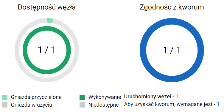 Zgodność z kworum: Wyświetlanie liczby węzłów wymaganych dla kworum, którą należy zapewnić, oraz liczby uruchomionych węzłów.
