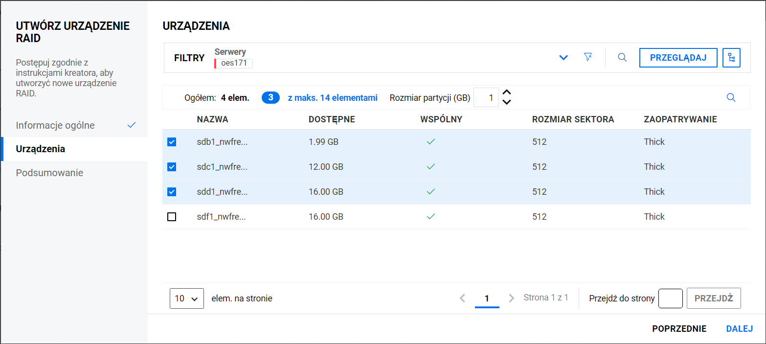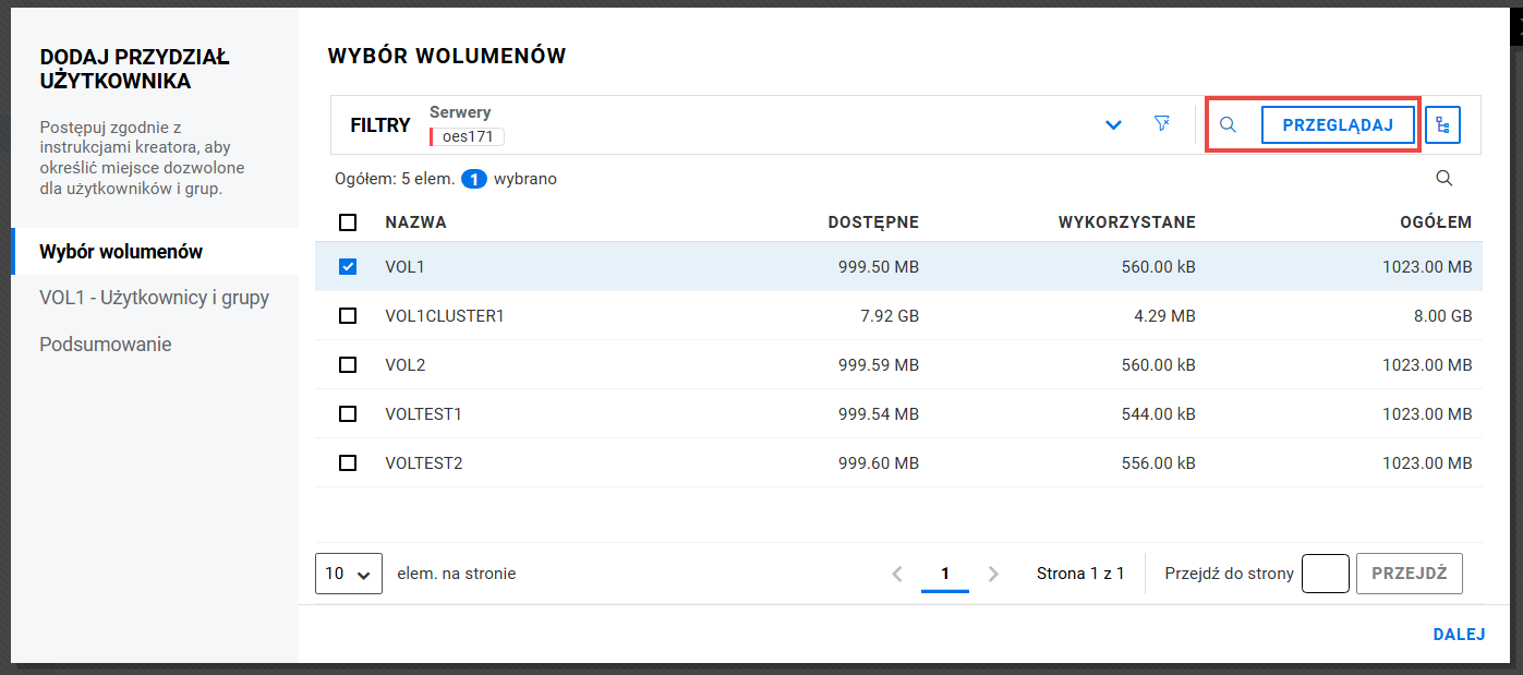 Na stronie Kontenery wyszukaj serwer w celu wybrania kontenerów i kliknij przycisk Dalej.