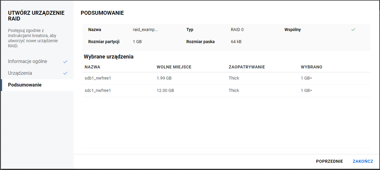 Na stronie Podsumowanie sprawdź kontenery i serwery, a następnie kliknij przycisk Zakończ.