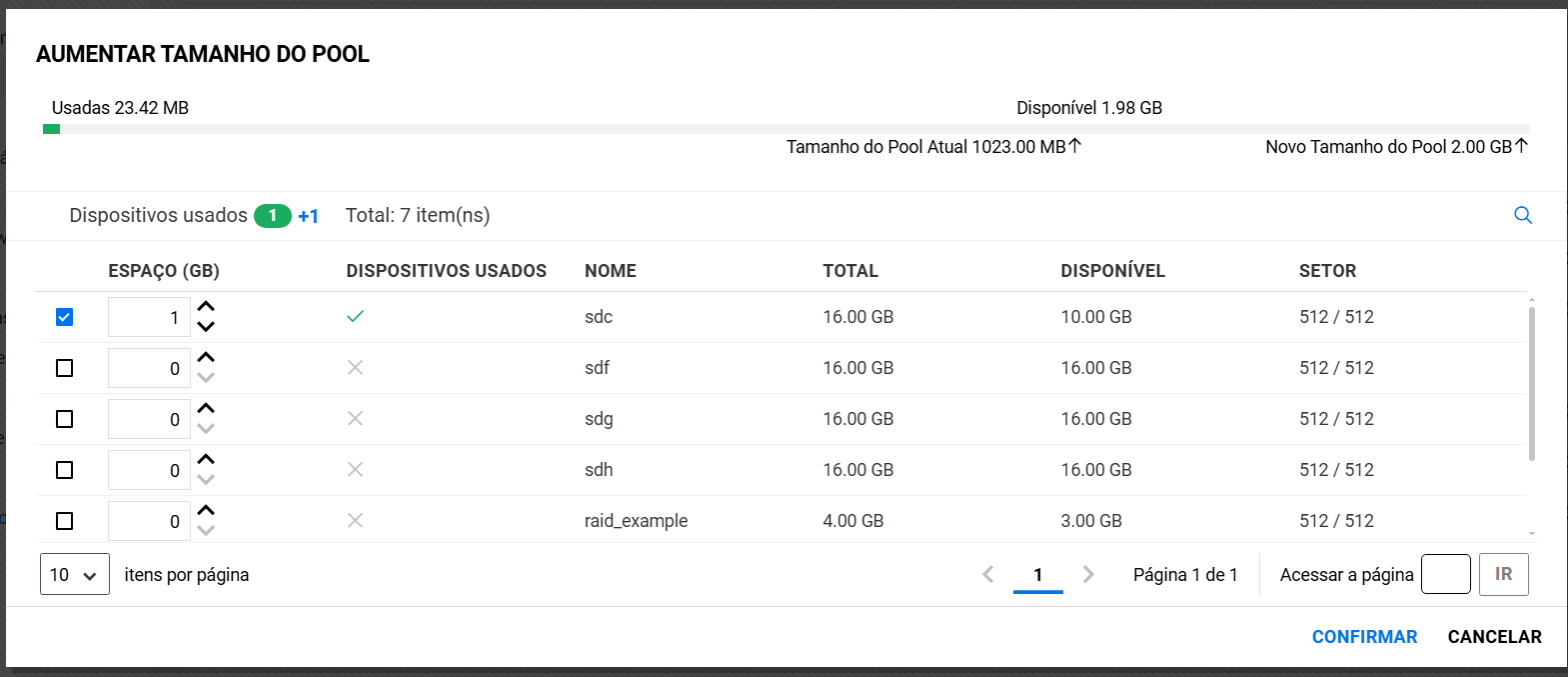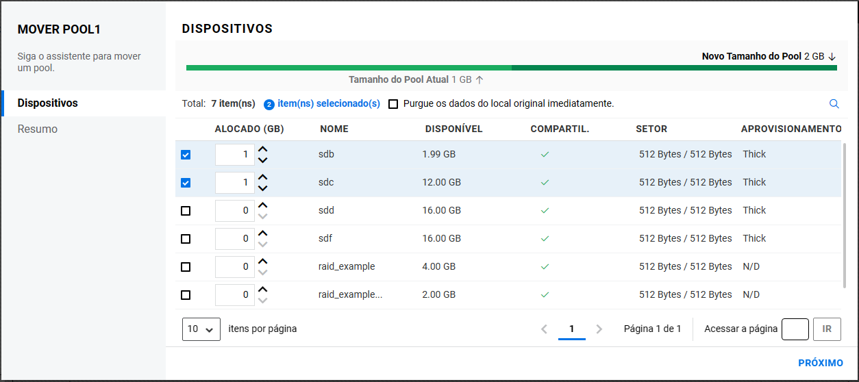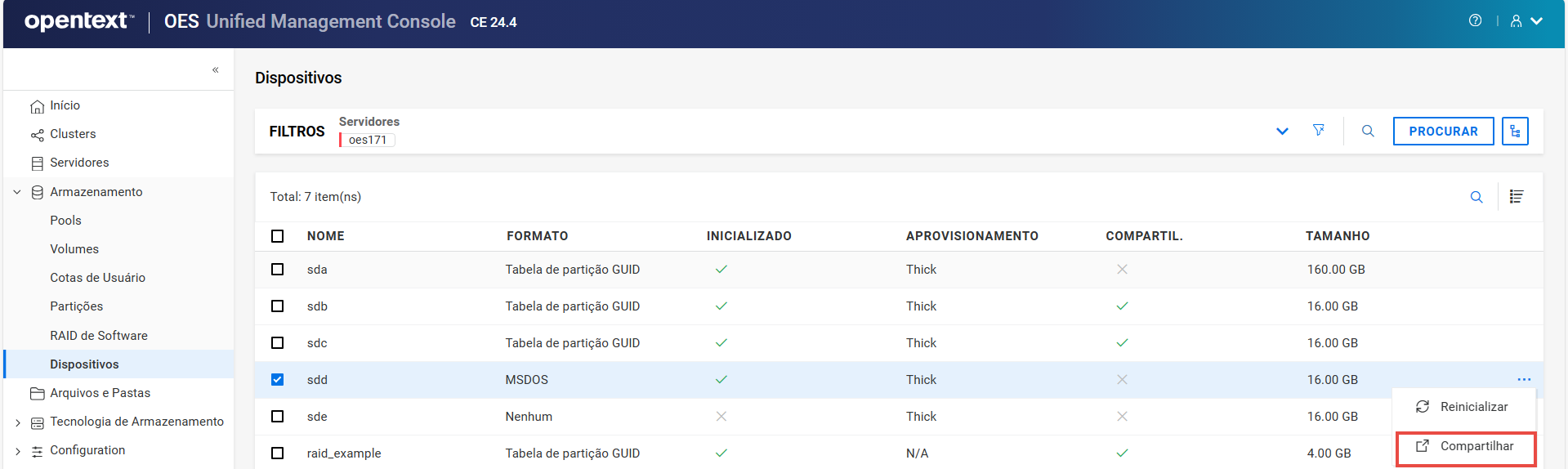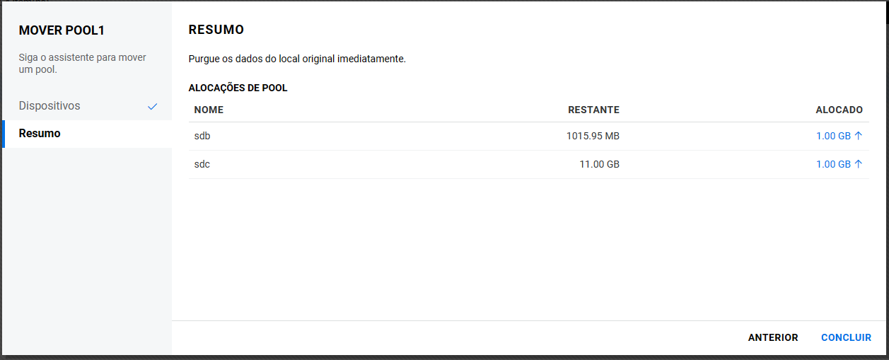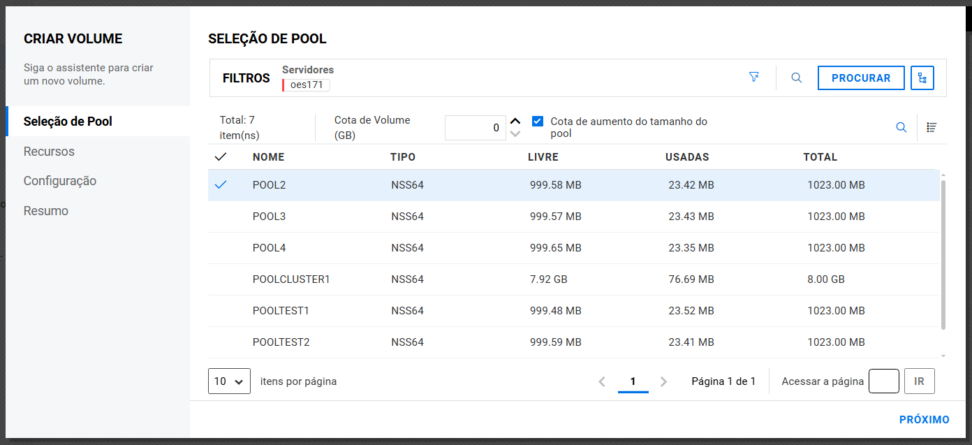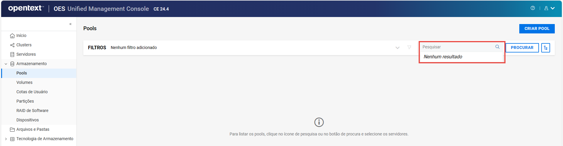 A criação de um pool em um dispositivo compartilhado não será permitida se a configuração não estiver definida para cluster.