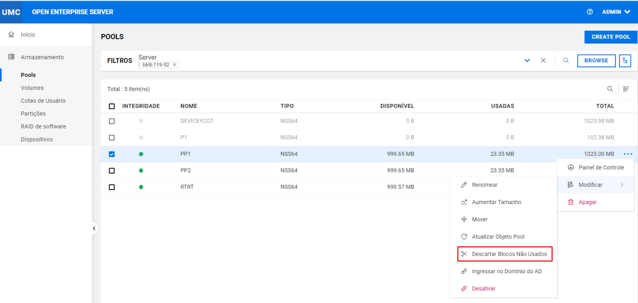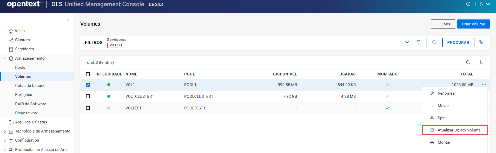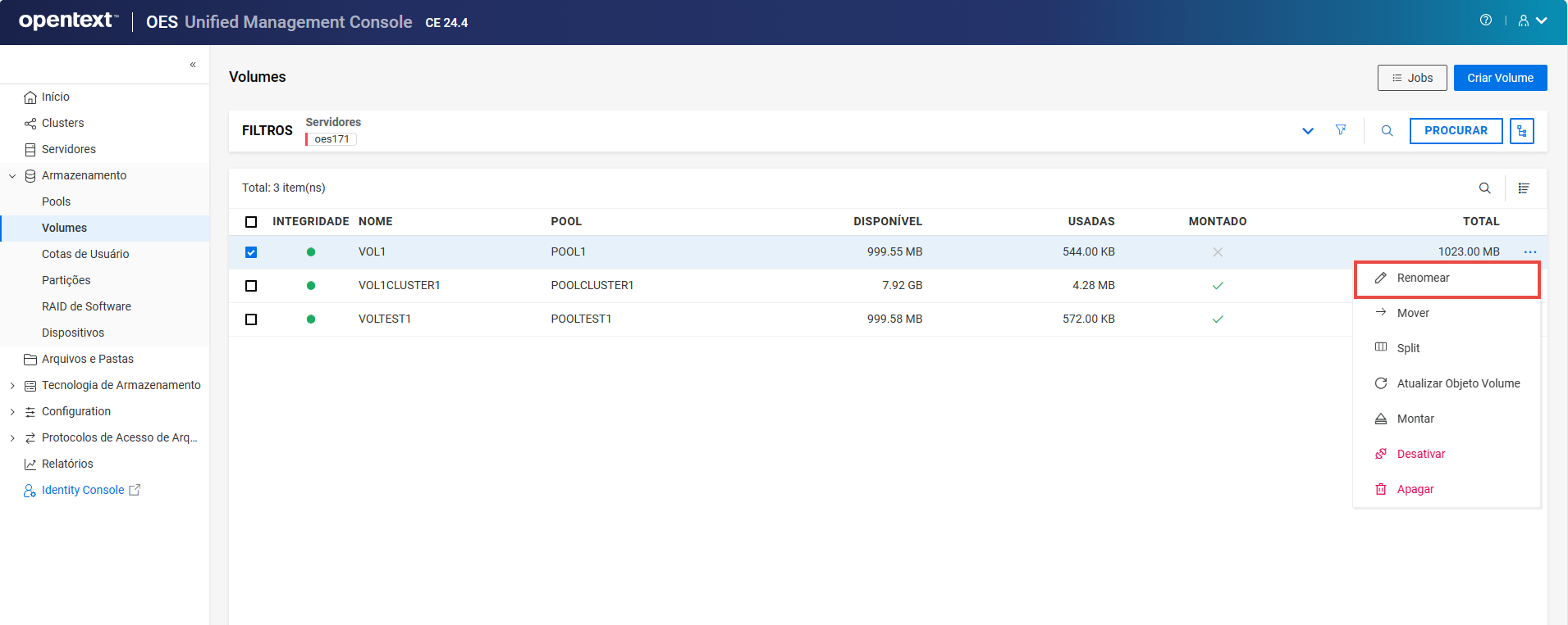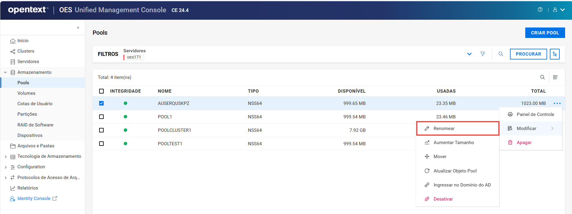Você pode enfrentar um comportamento inconsistente ao renomear um pool de clusters ou volume. Se você não conseguir listar pools ou volumes após a renomeação, abra o UMC de outra janela no modo anônimo.