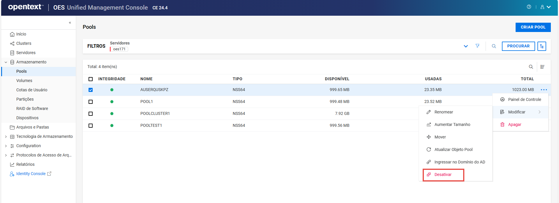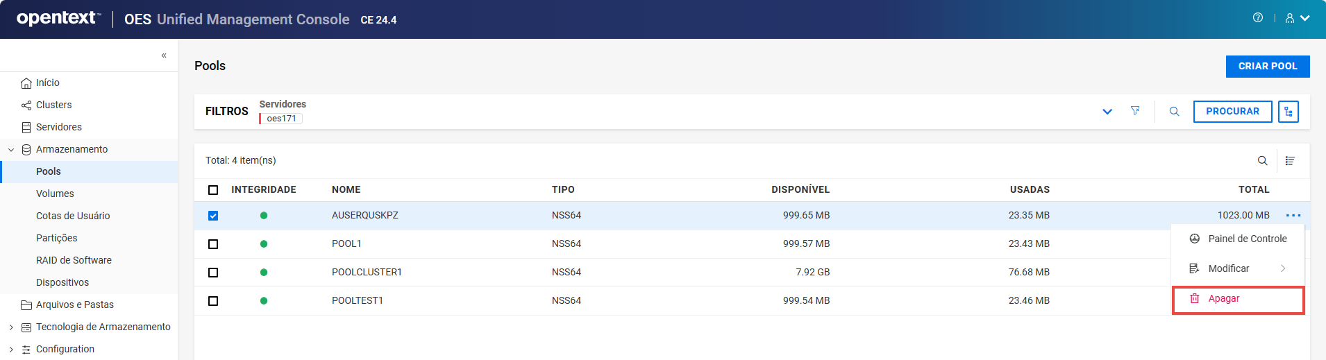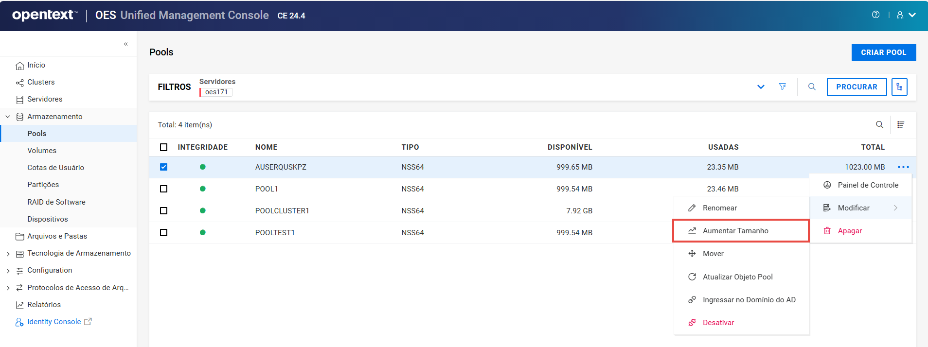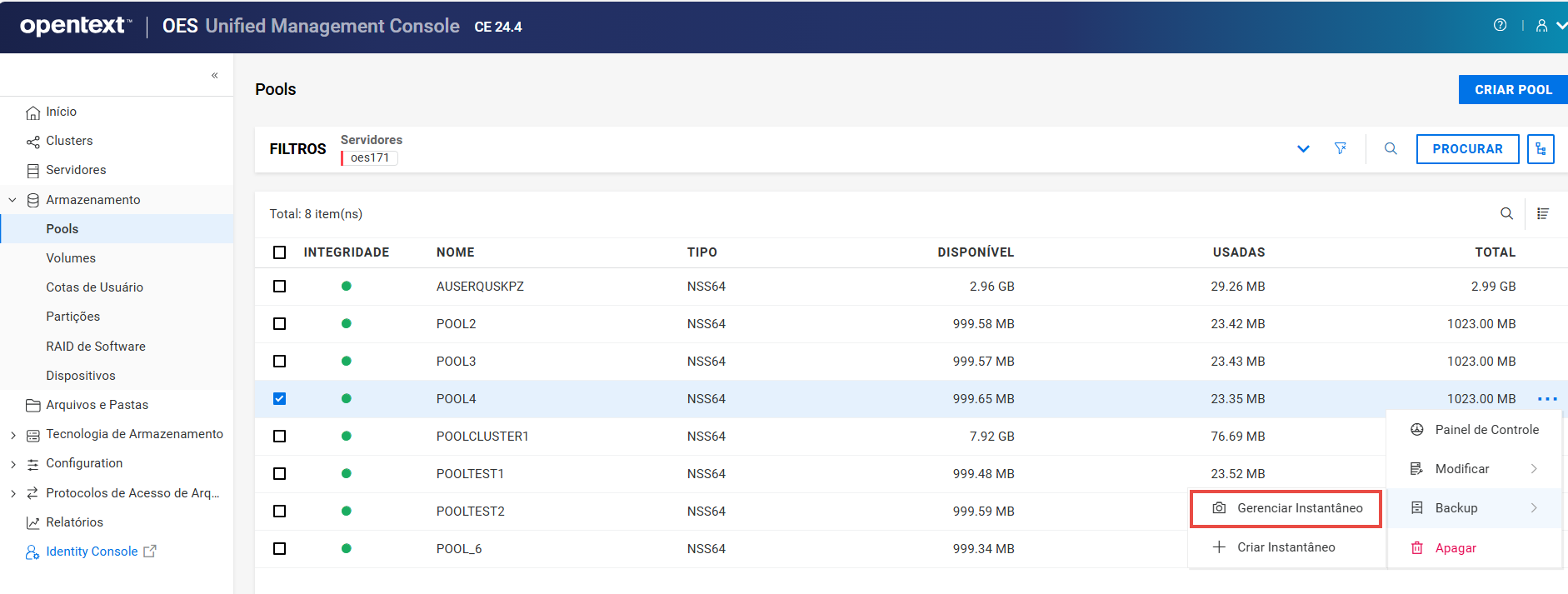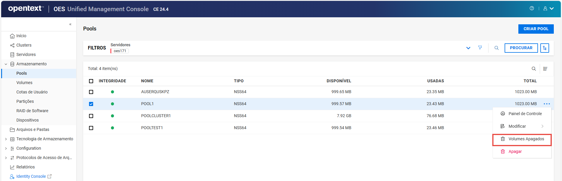 Você pode enfrentar um comportamento inconsistente ao renomear um pool de clusters ou volume. Se você não conseguir listar pools ou volumes após a renomeação, abra o UMC de outra janela no modo anônimo.