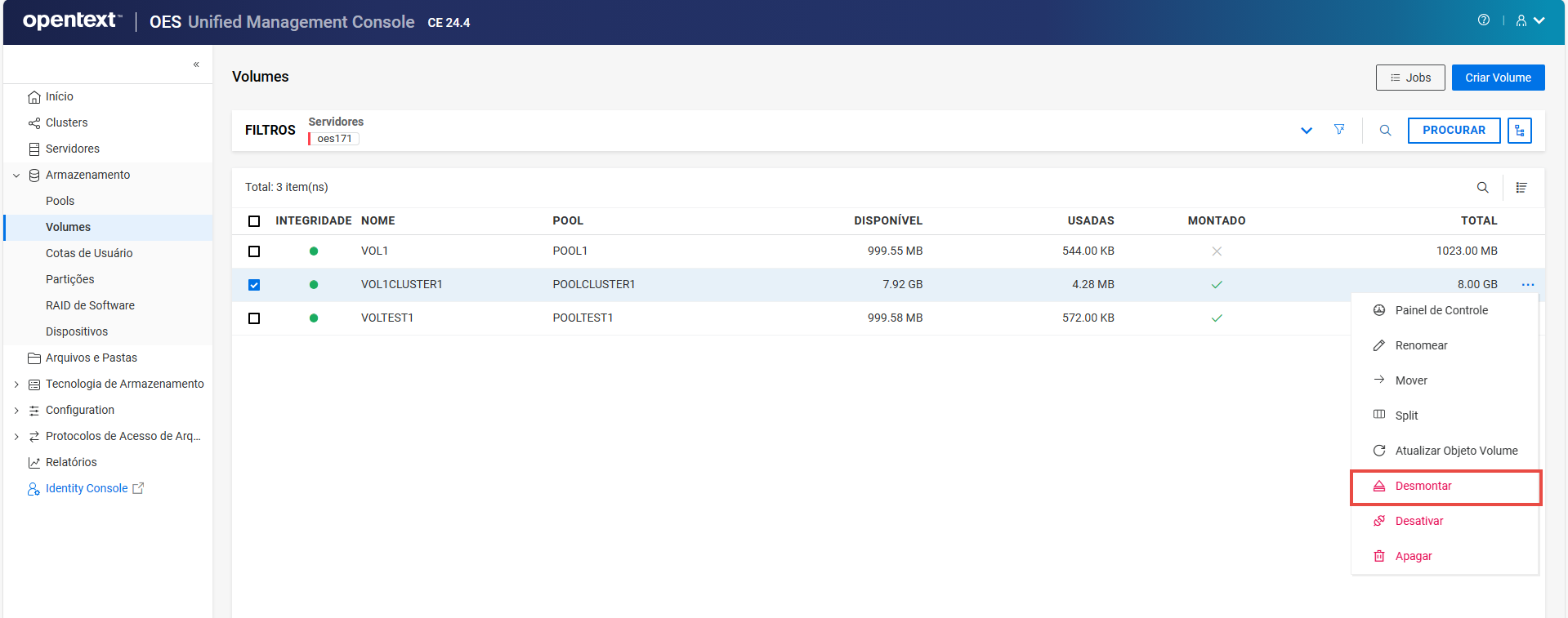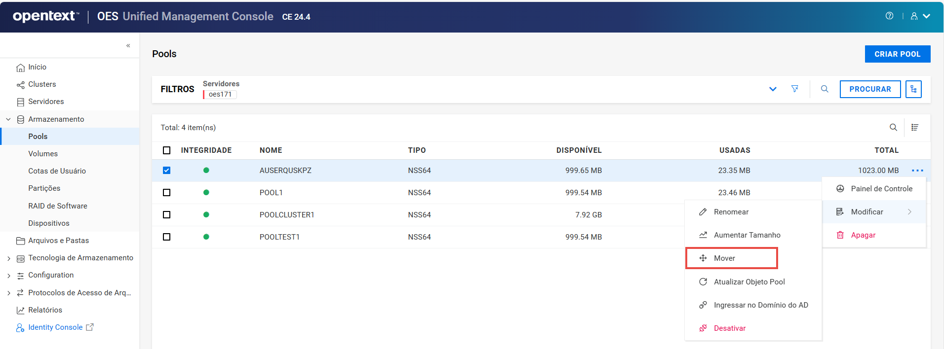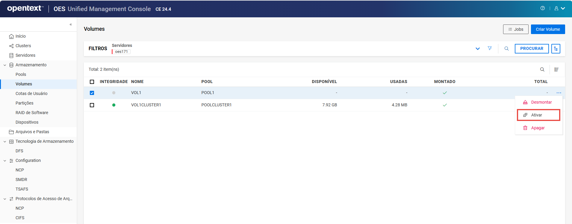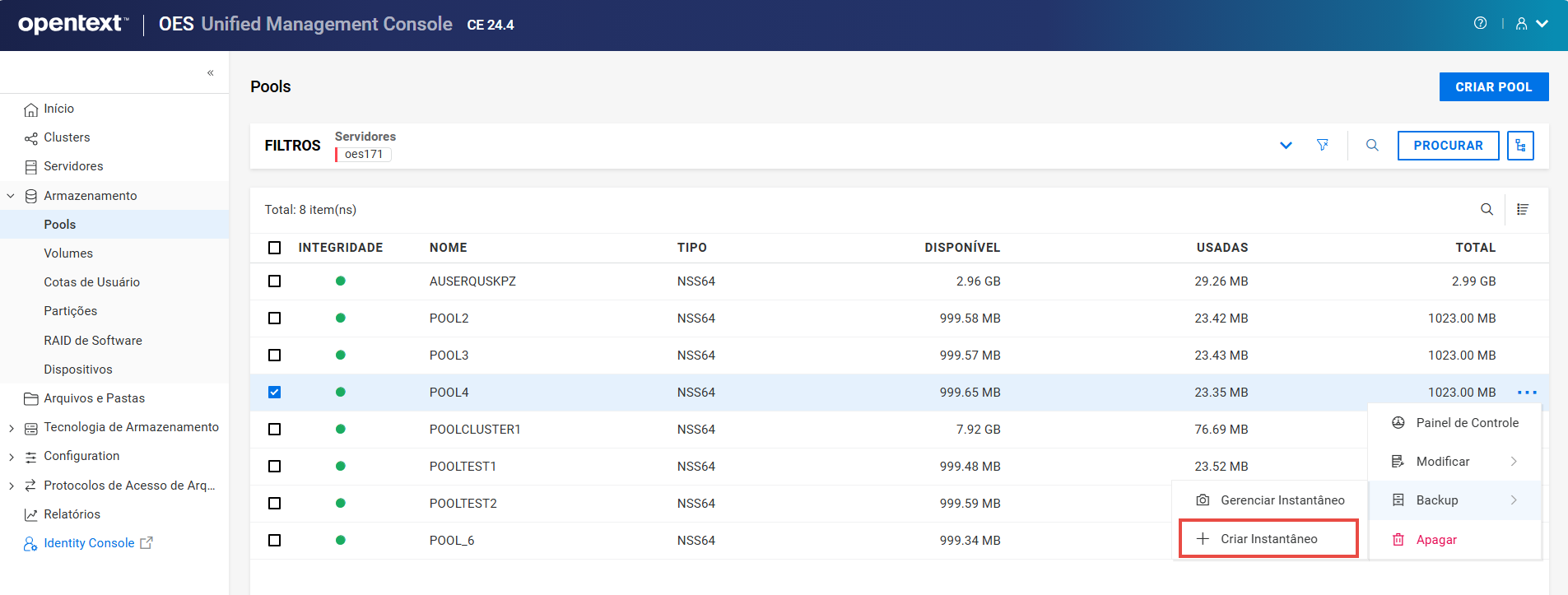 Você pode enfrentar um comportamento inconsistente ao renomear um pool de clusters ou volume. Se você não conseguir listar pools ou volumes após a renomeação, abra o UMC de outra janela no modo anônimo.