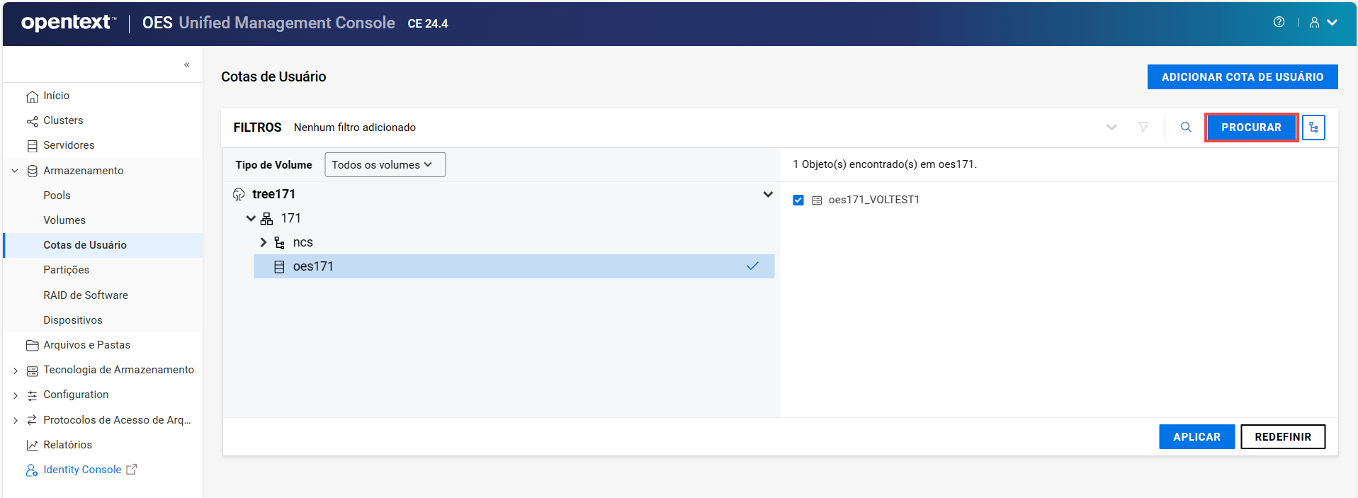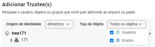 Procure e selecione os objetos de cluster que você deseja exibir.