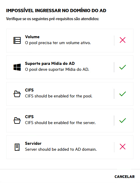 Se o objeto do pool já existir, o ingresso do pool em um domínio do AD falhará. Limpe o objeto no Active Directory e tente novamente.