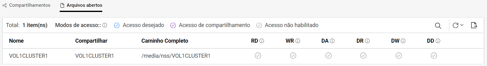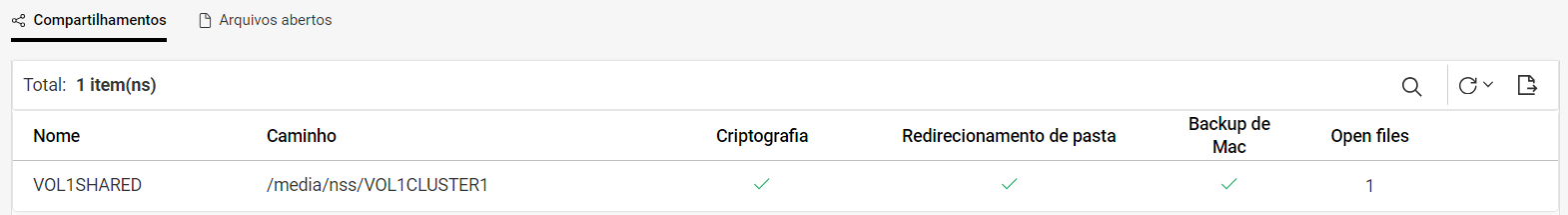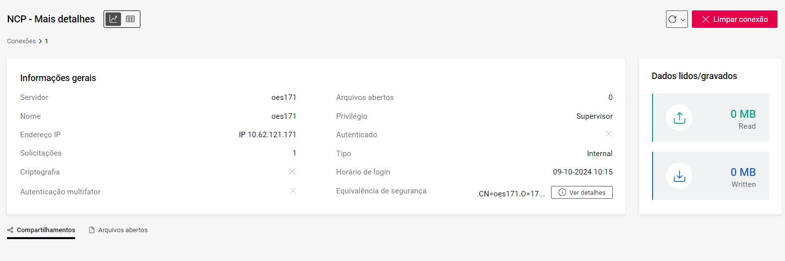 Tela de tabela: Lista as conexões NCP e CIFS.