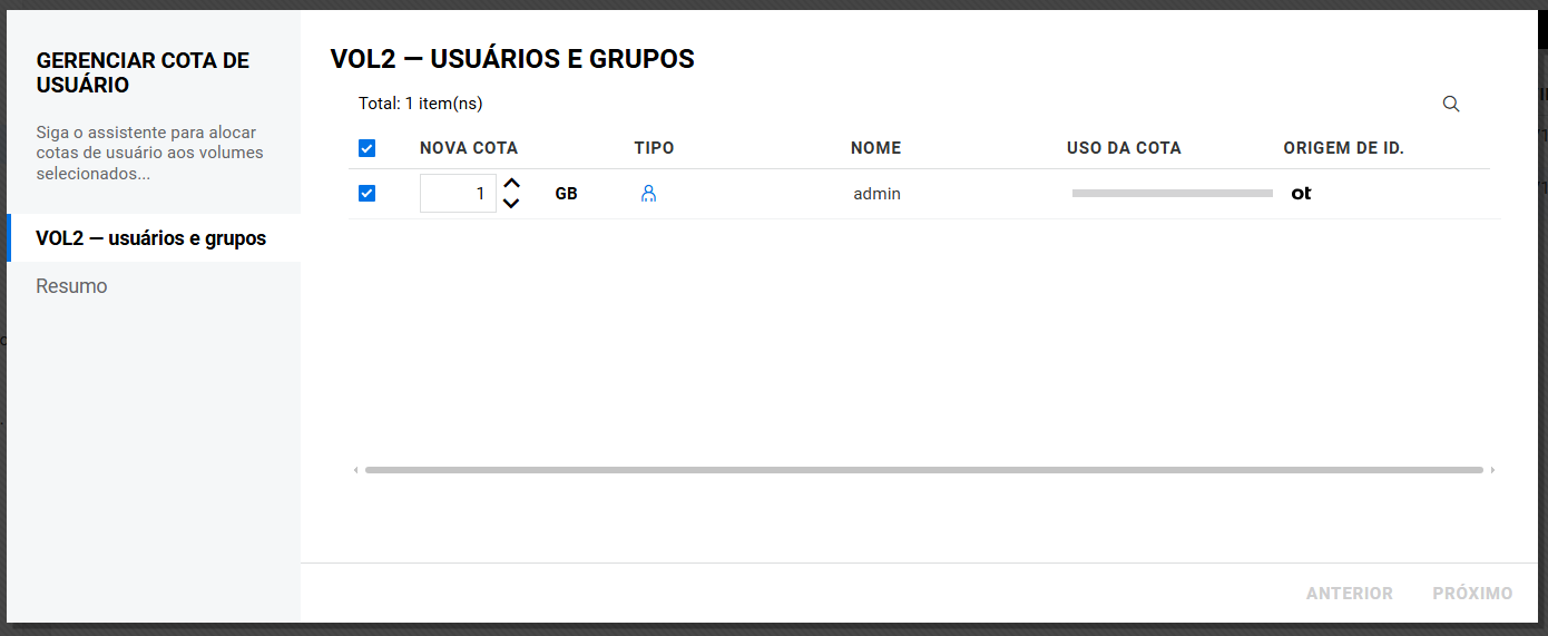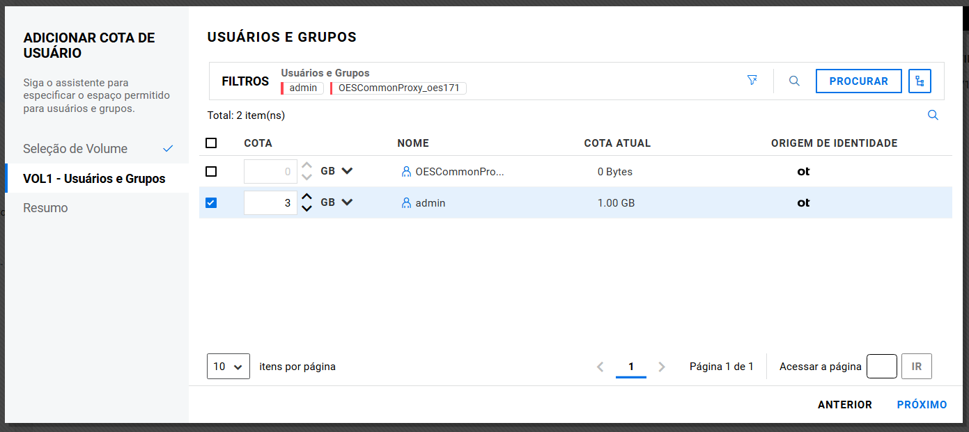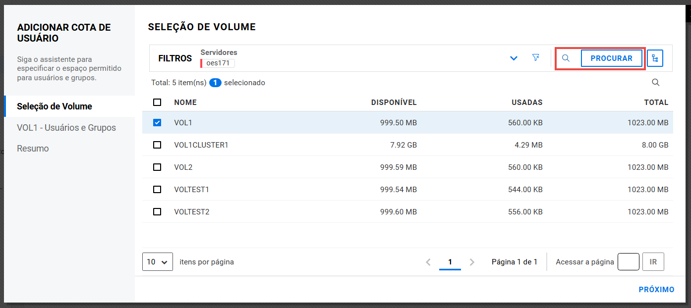 Pesquise ou navegue pelos servidores para listar os contextos de usuário.