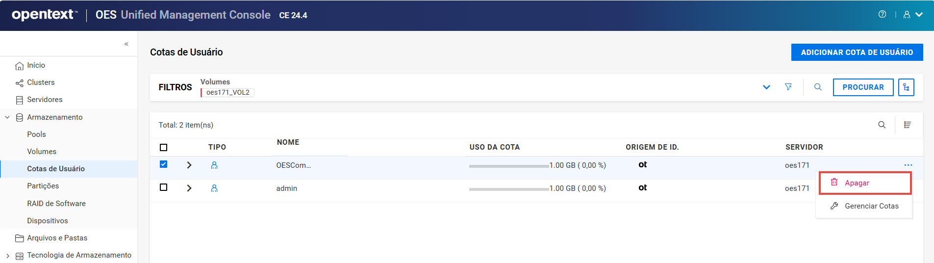 A remoção de um contexto de usuário restringe o acesso dos usuários no contêiner ao compartilhamento.