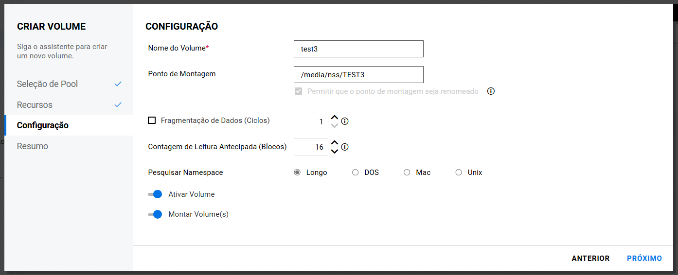 Antes de criar um volume, execute /PoolMediaUpgrade=pool_name /MediaType=AES por meio do console NSS.