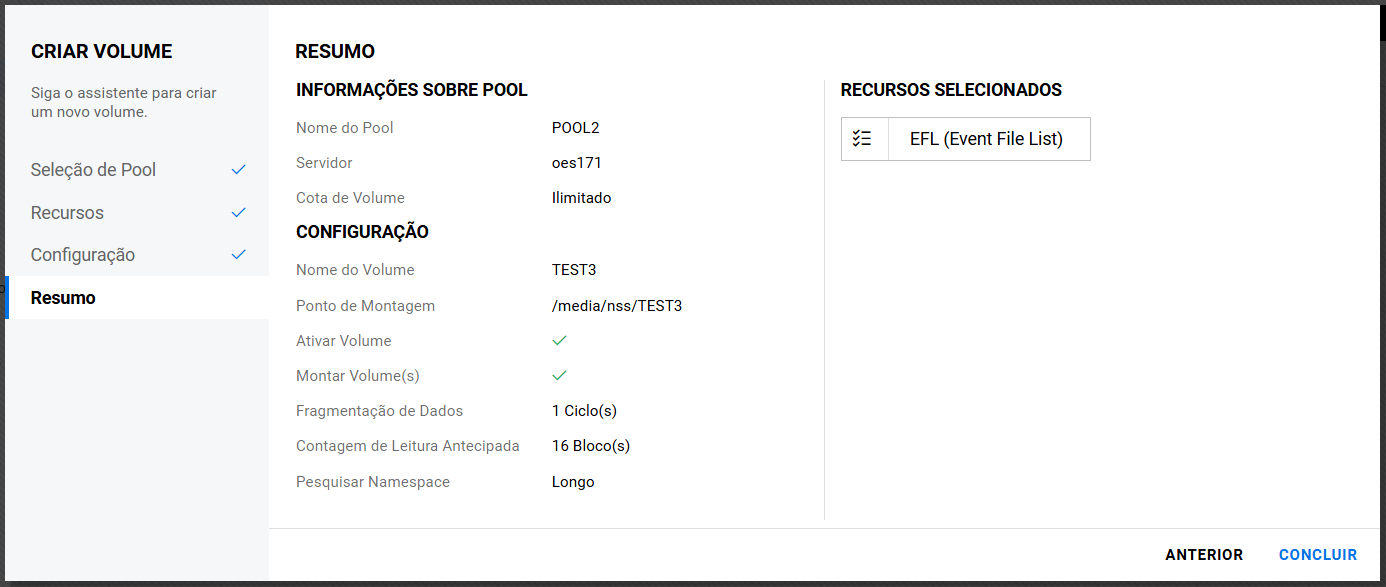 Na página Resumo, verifique os contêineres e servidores e clique em Concluir.