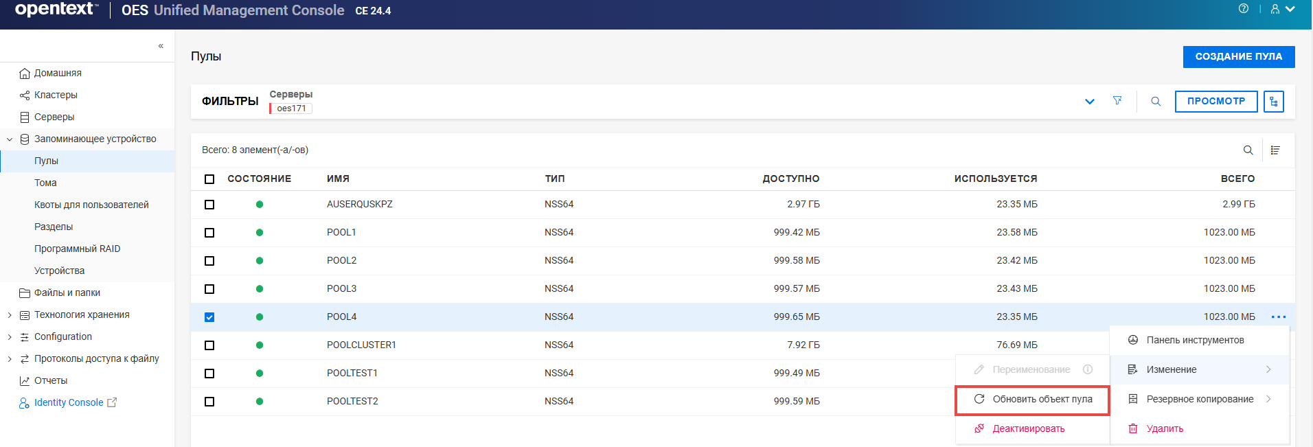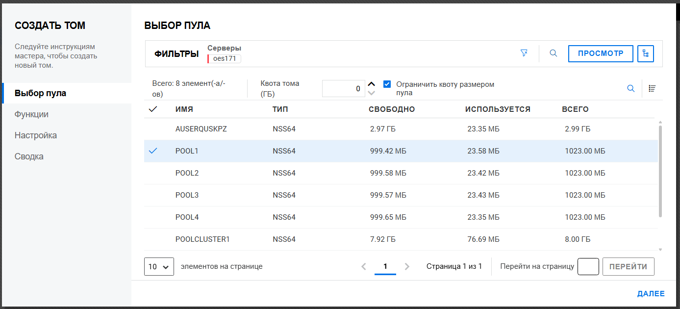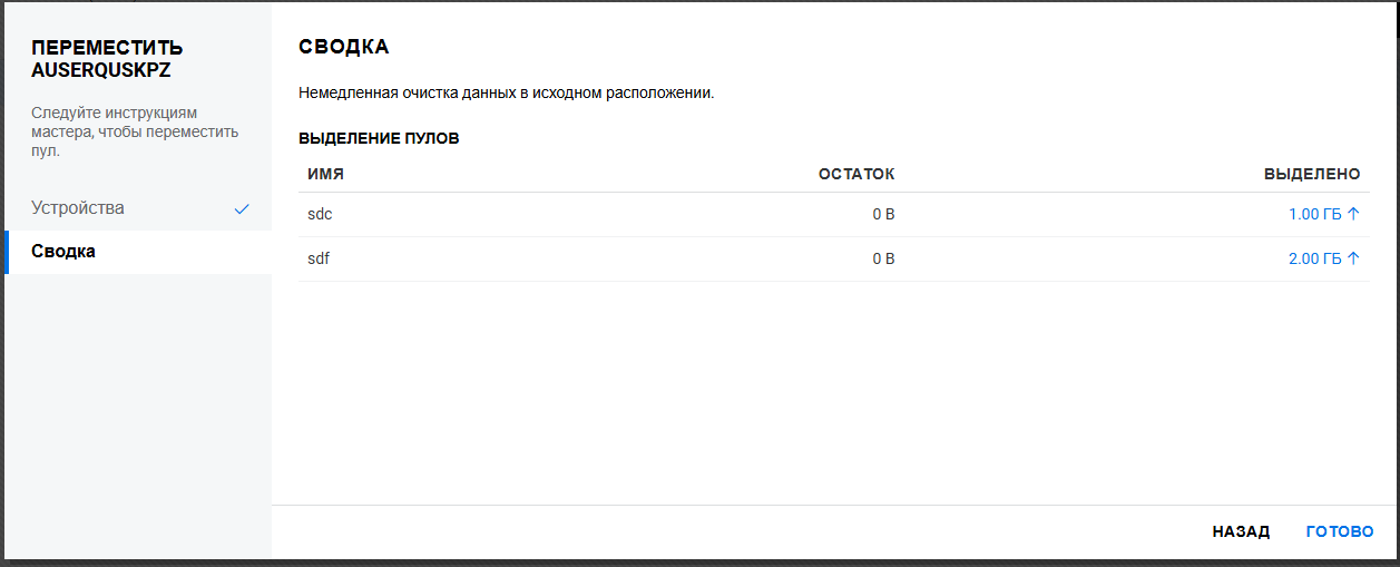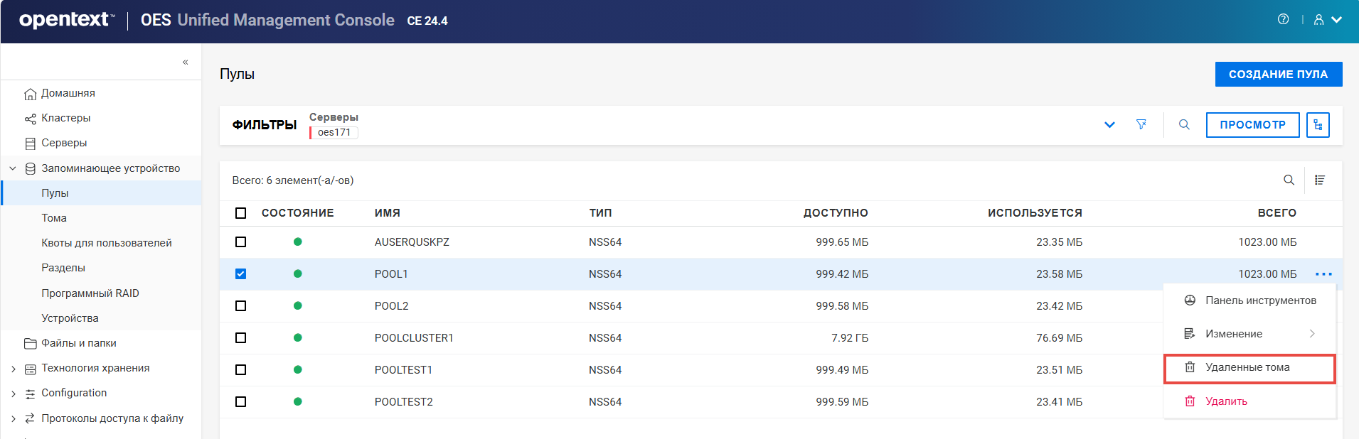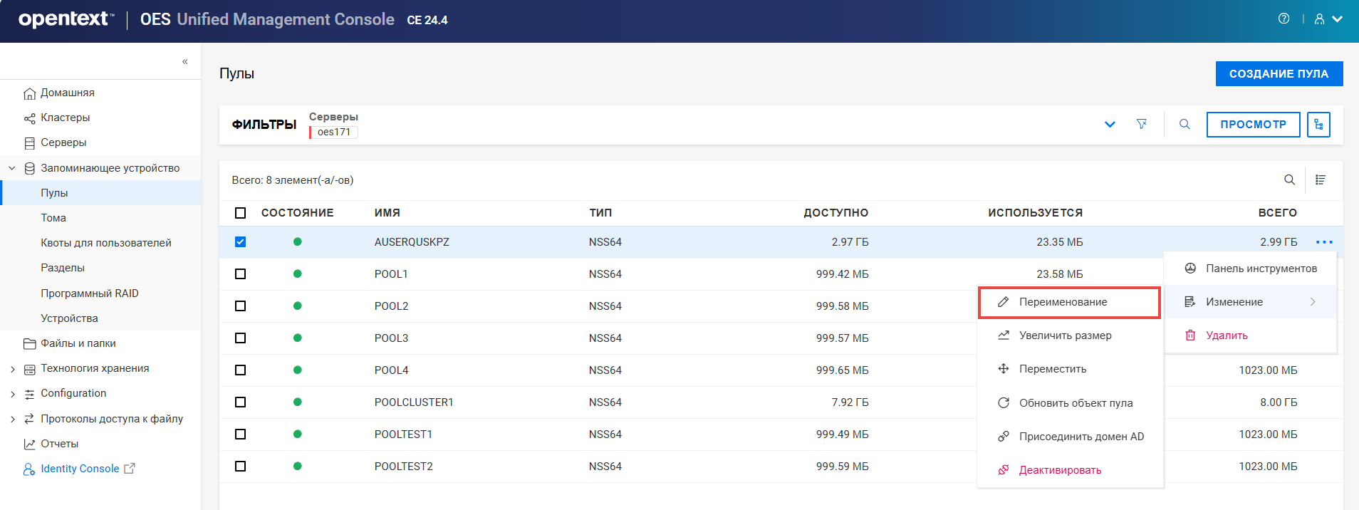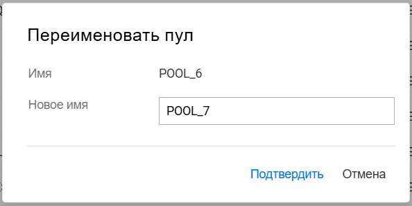 Переименование пула кластера или тома может привести к несогласованному поведению. Если после переименования невозможно вывести пулы или тома, откройте UMC из другого окна в режиме инкогнито.