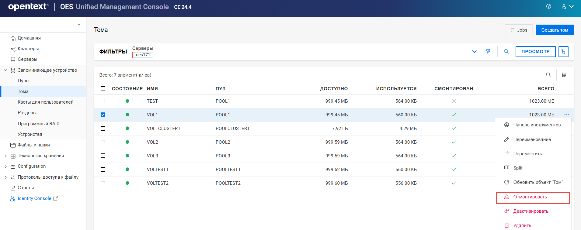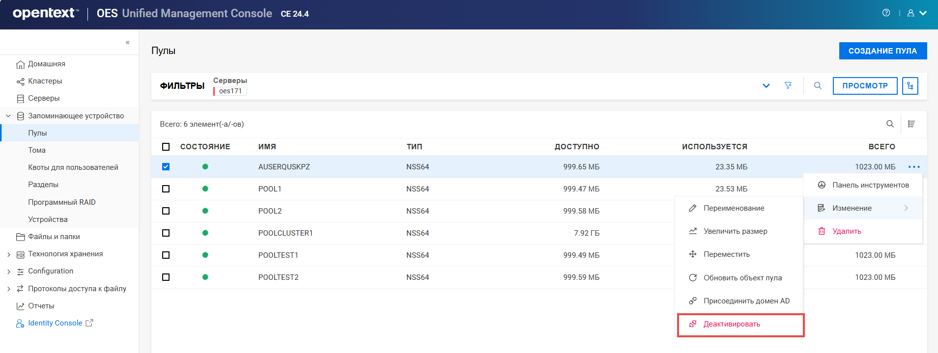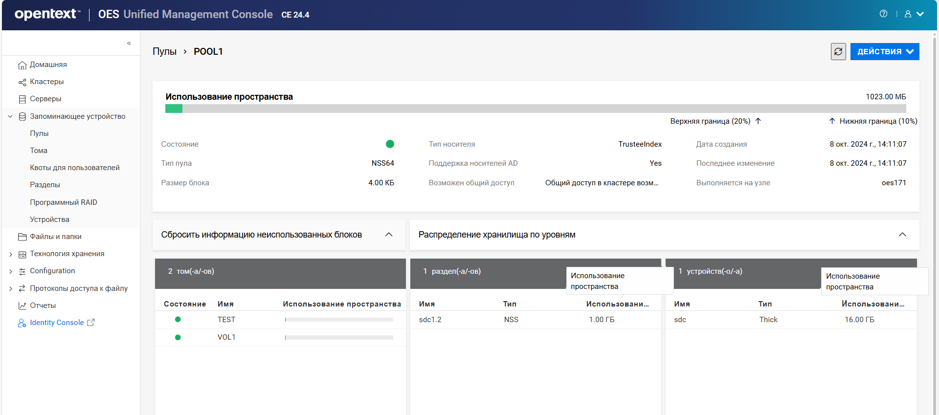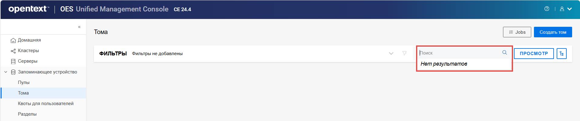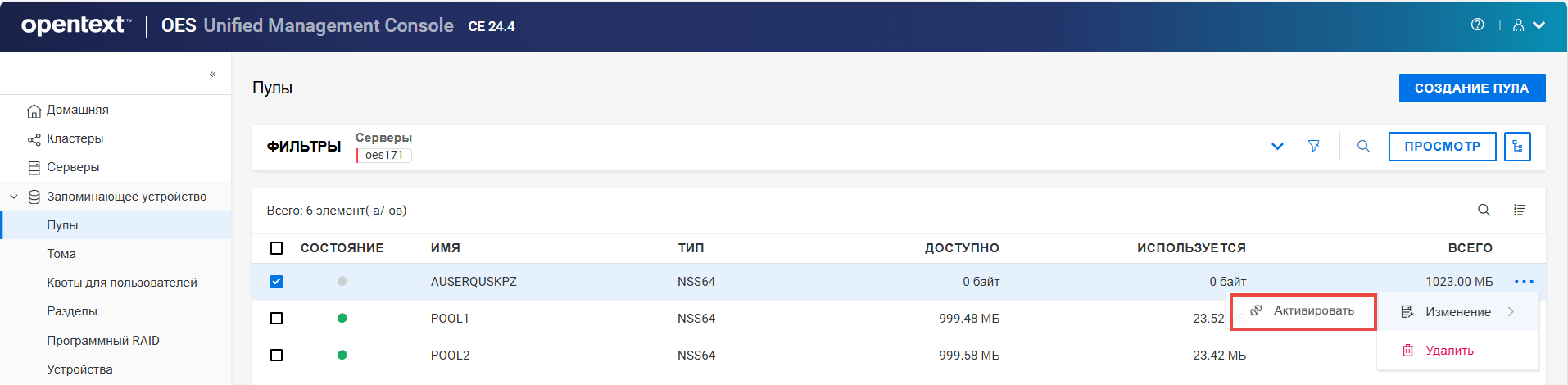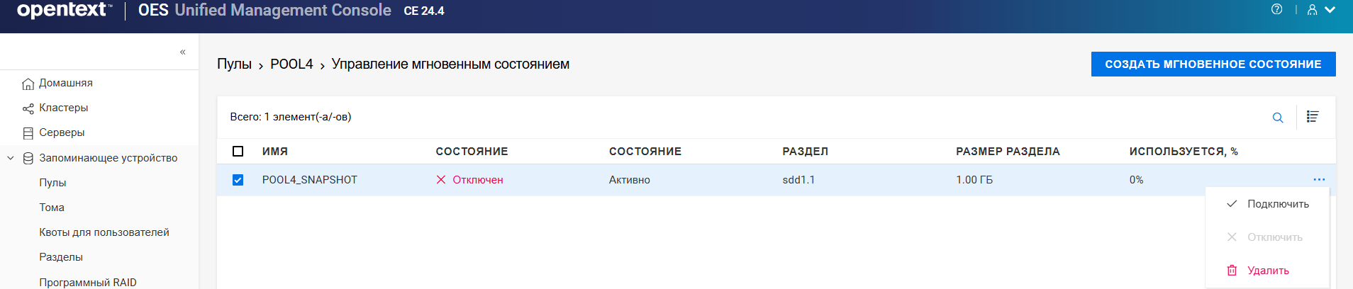Переименование пула кластера или тома может привести к несогласованному поведению. Если после переименования невозможно вывести пулы или тома, откройте UMC из другого окна в режиме инкогнито.