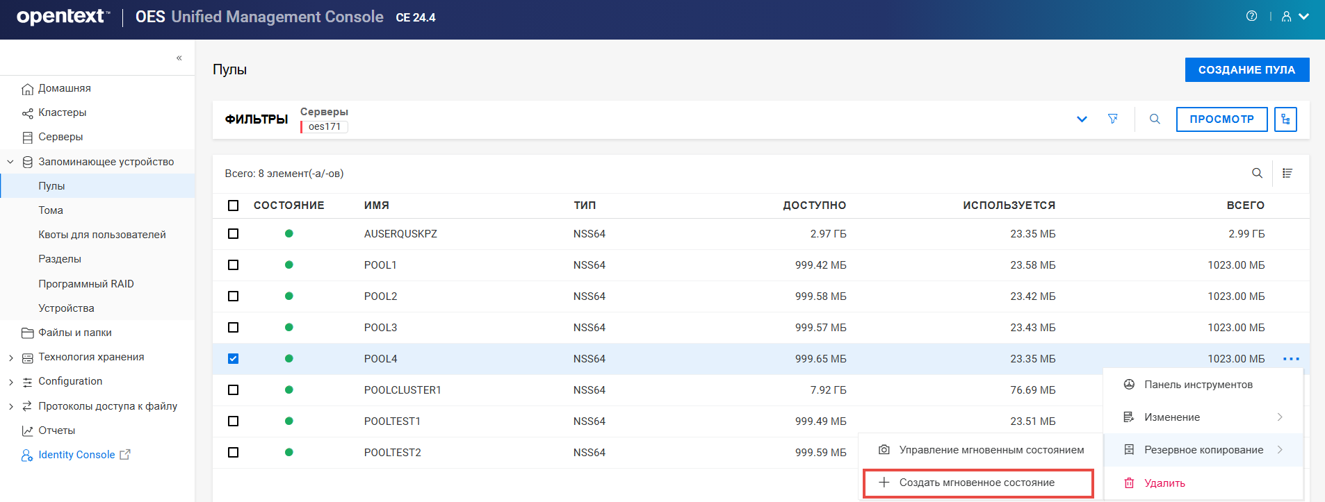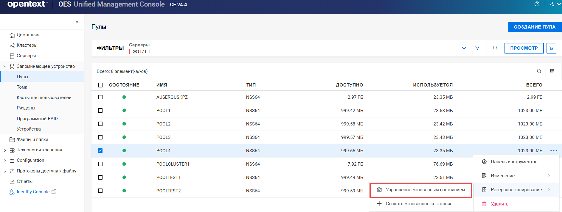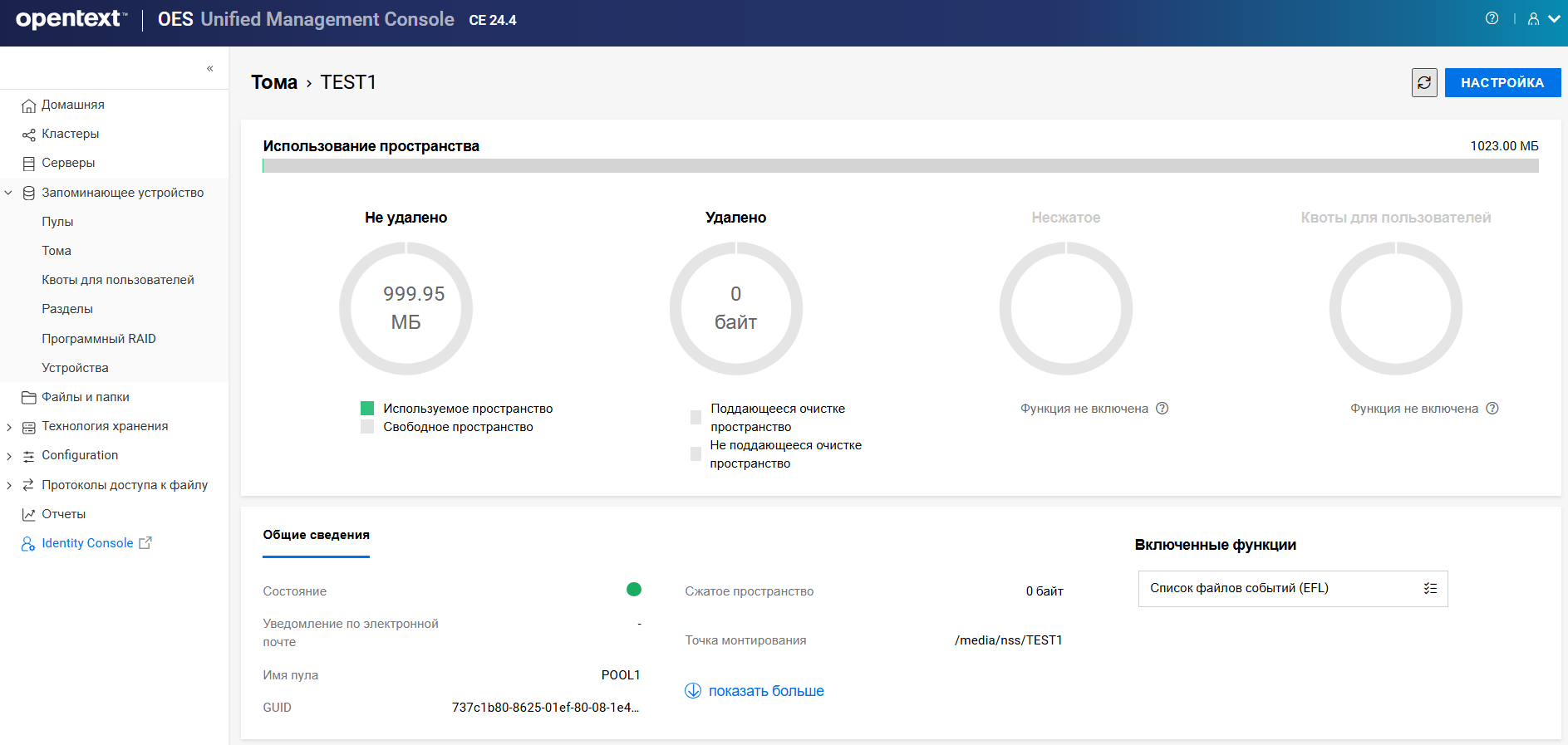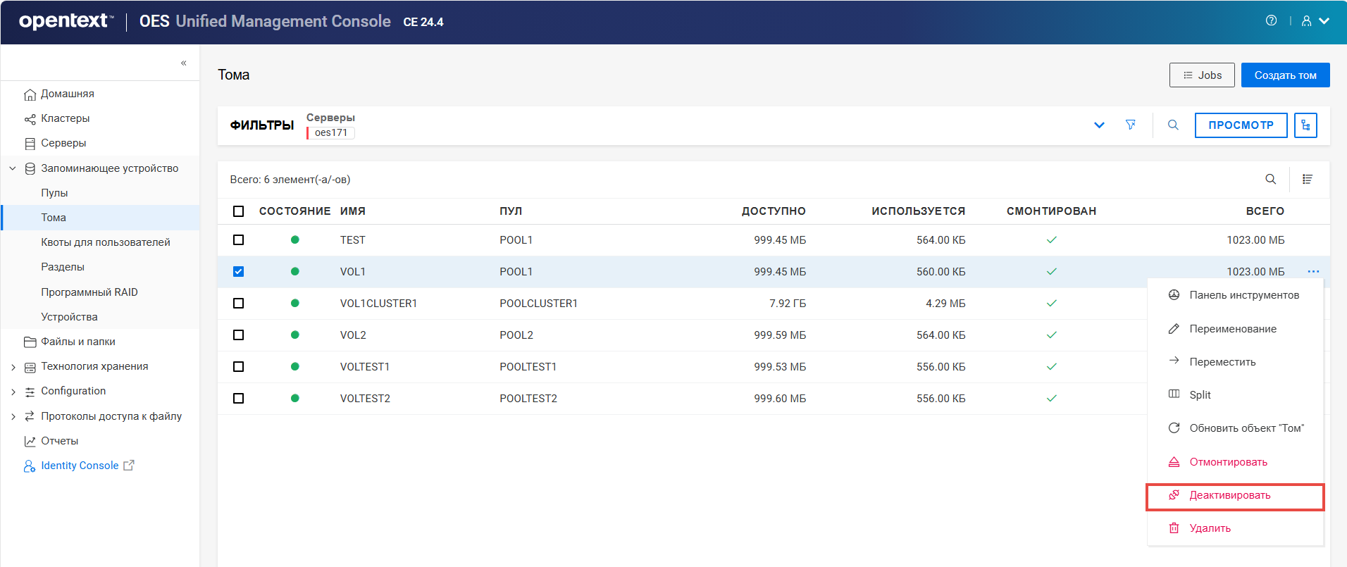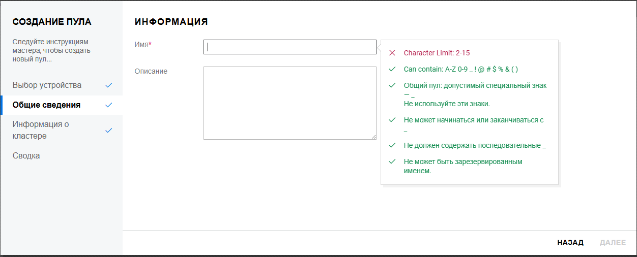 Переименование пула кластера или тома может привести к несогласованному поведению. Если после переименования невозможно вывести пулы или тома, откройте UMC из другого окна в режиме инкогнито.