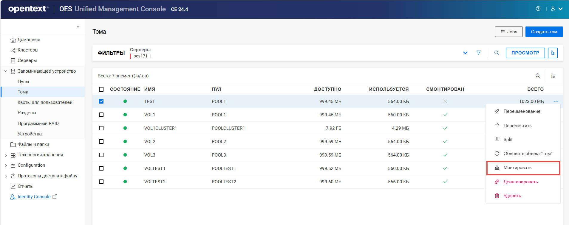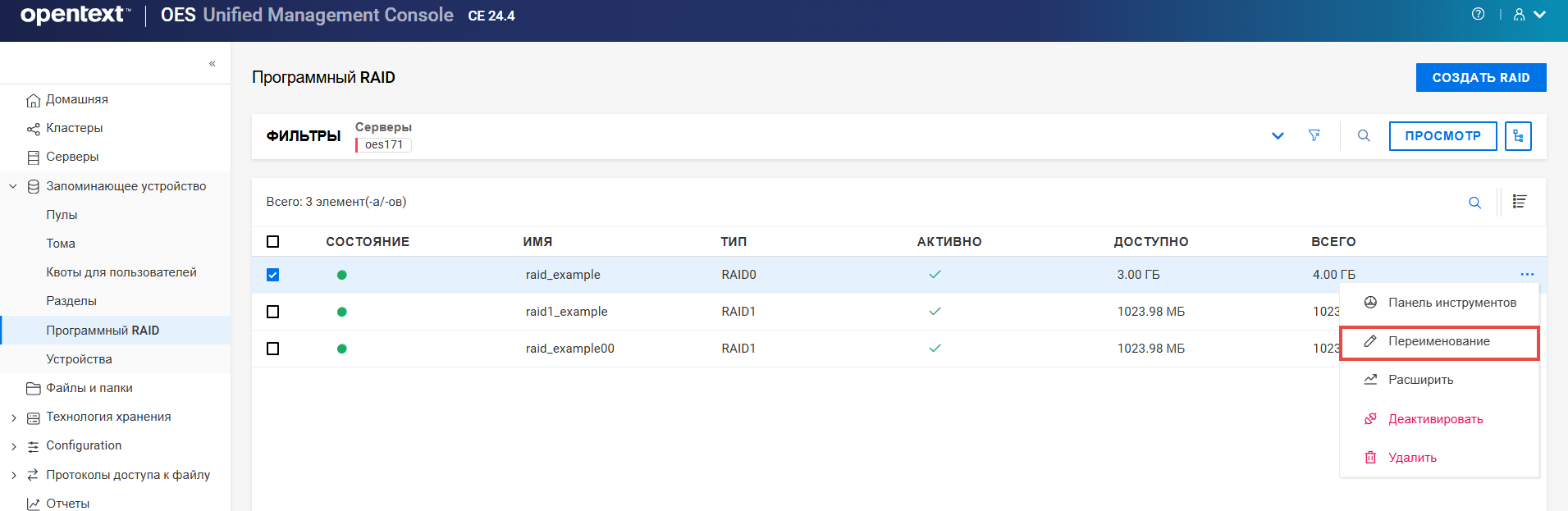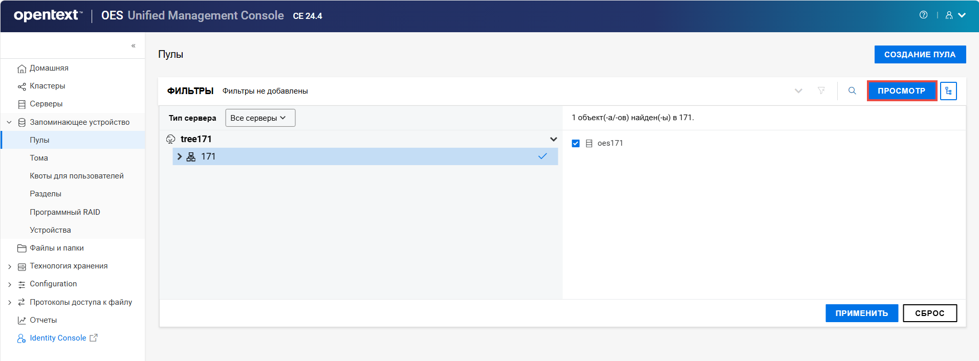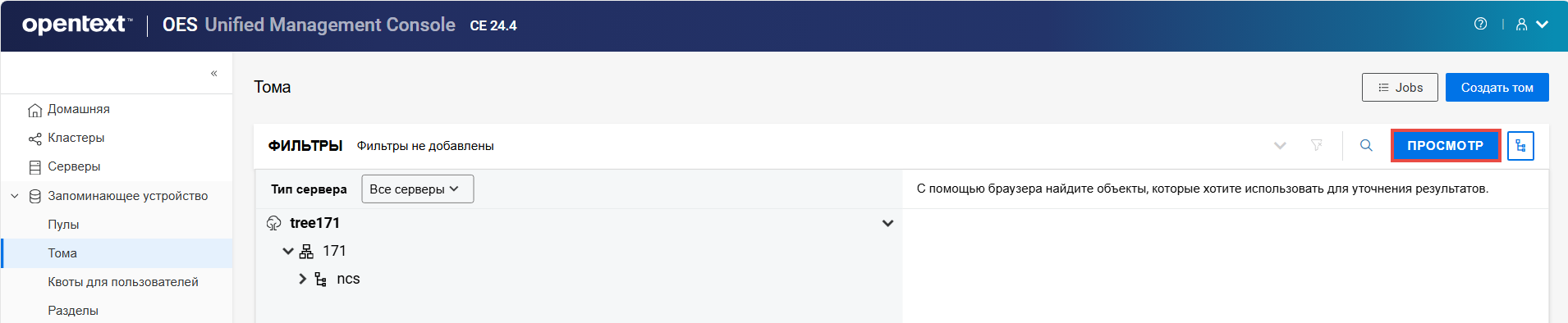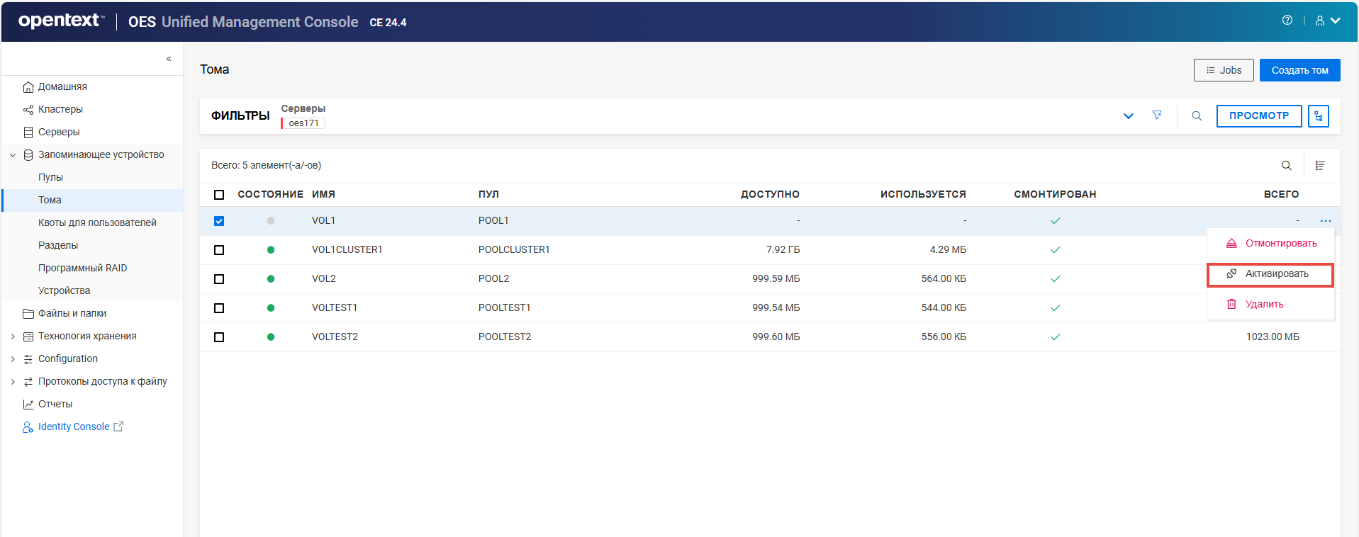 Переименование пула кластера или тома может привести к несогласованному поведению. Если после переименования невозможно вывести пулы или тома, откройте UMC из другого окна в режиме инкогнито.