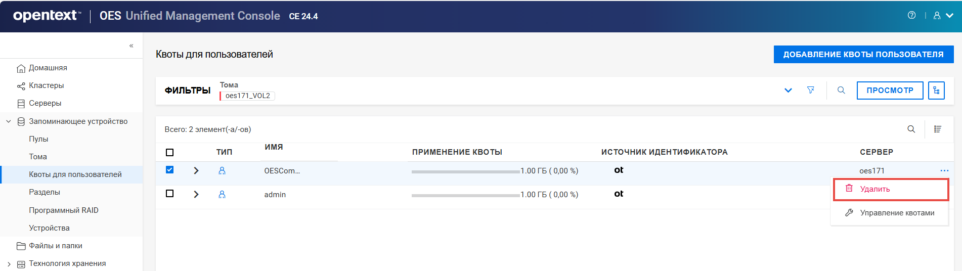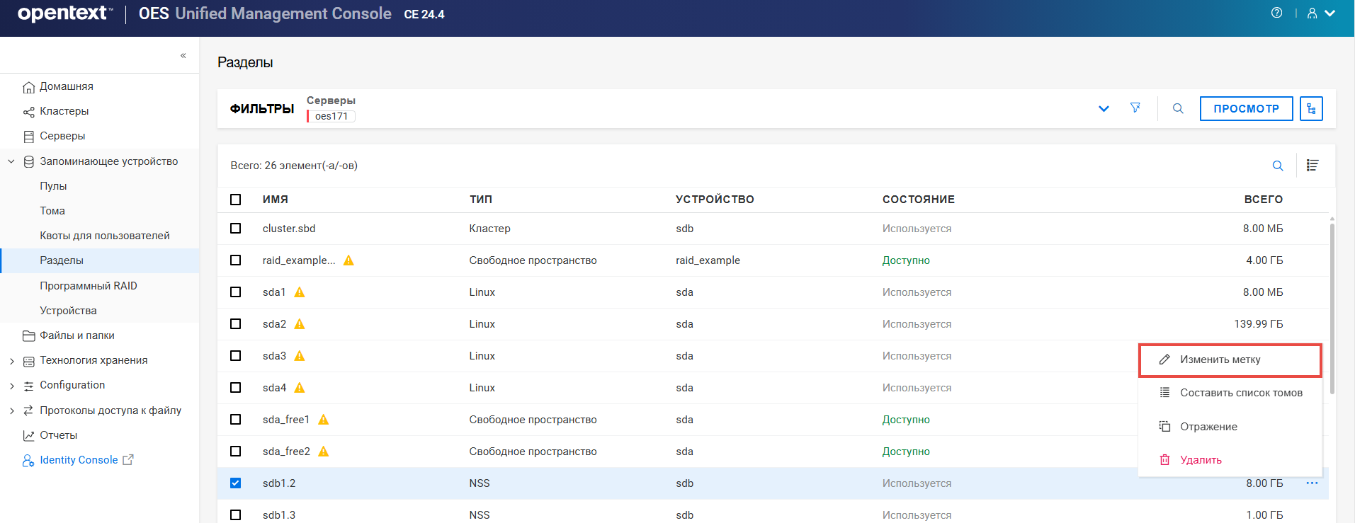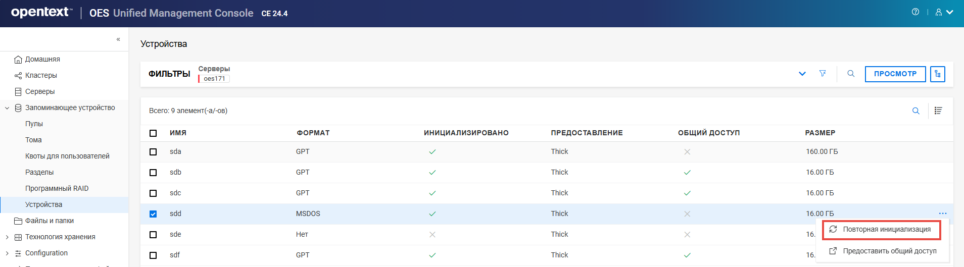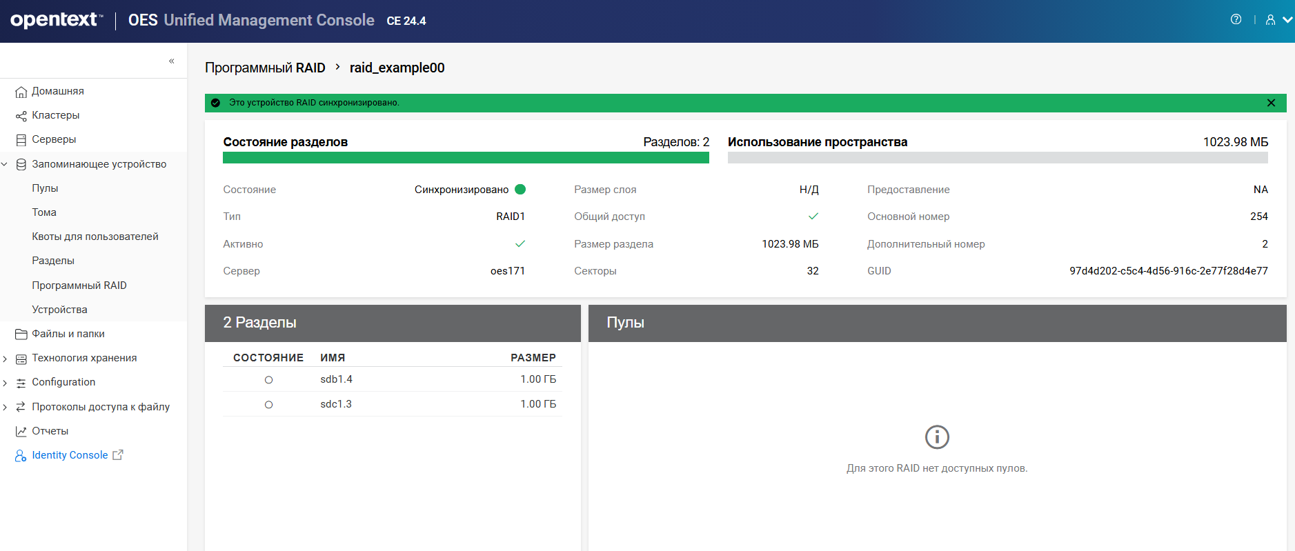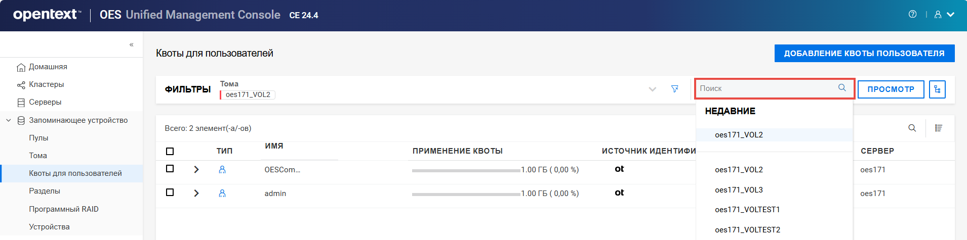 Переименование пула кластера или тома может привести к несогласованному поведению. Если после переименования невозможно вывести пулы или тома, откройте UMC из другого окна в режиме инкогнито.