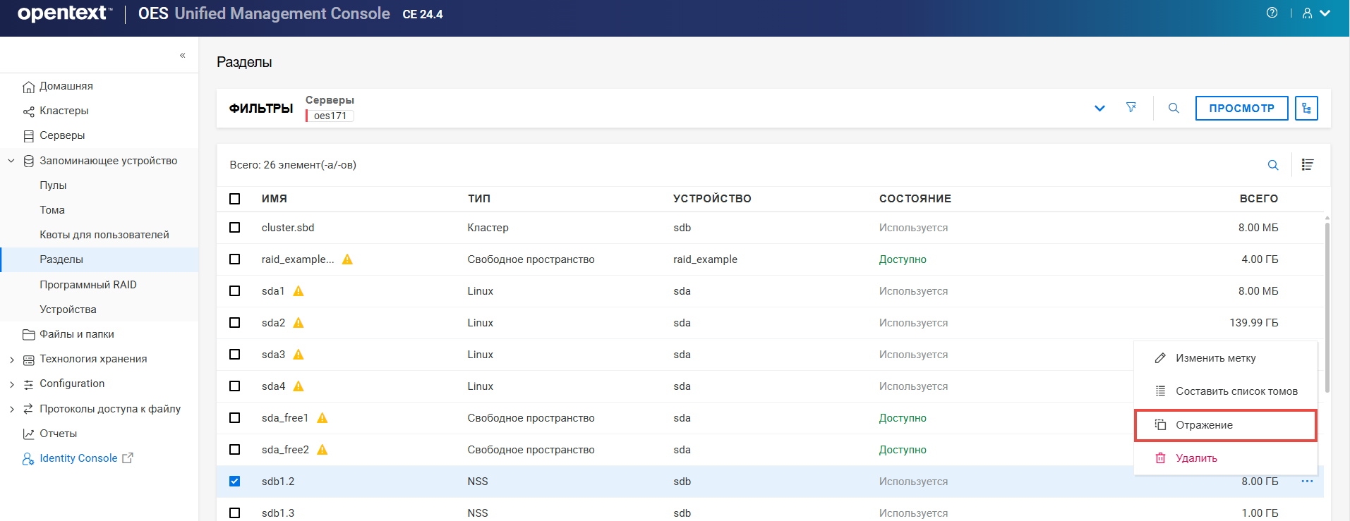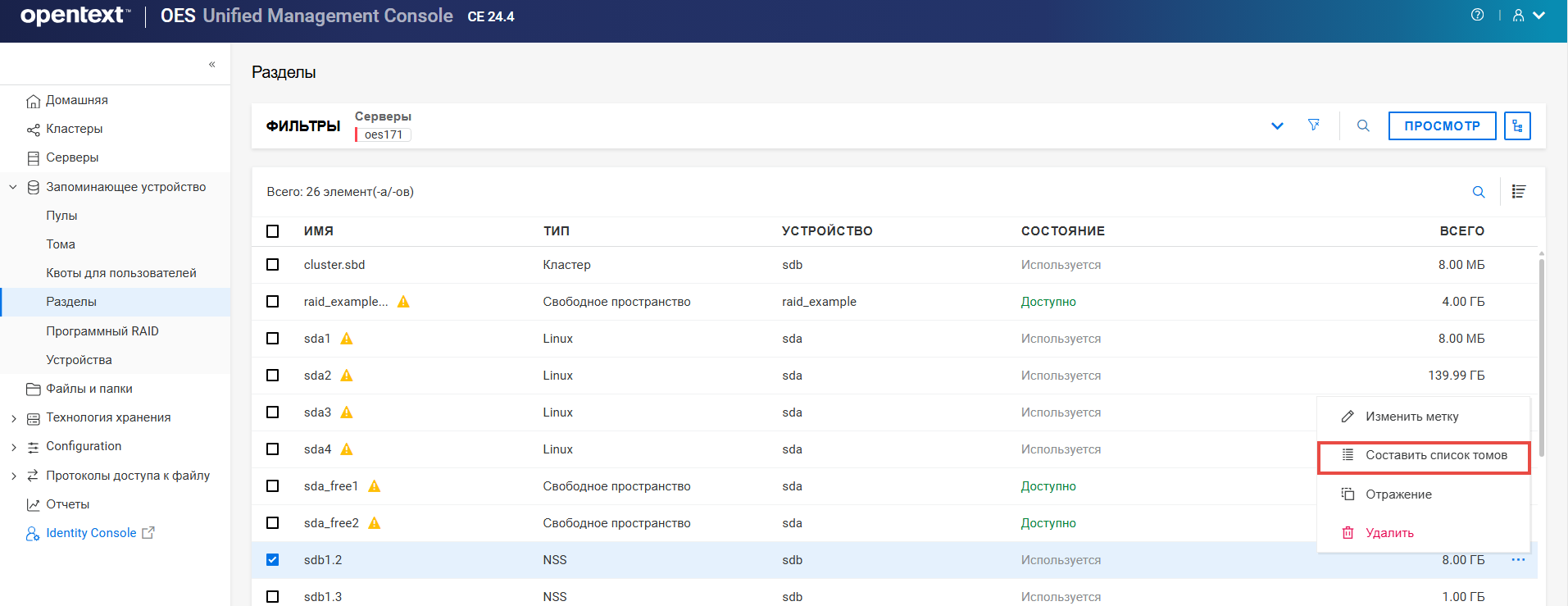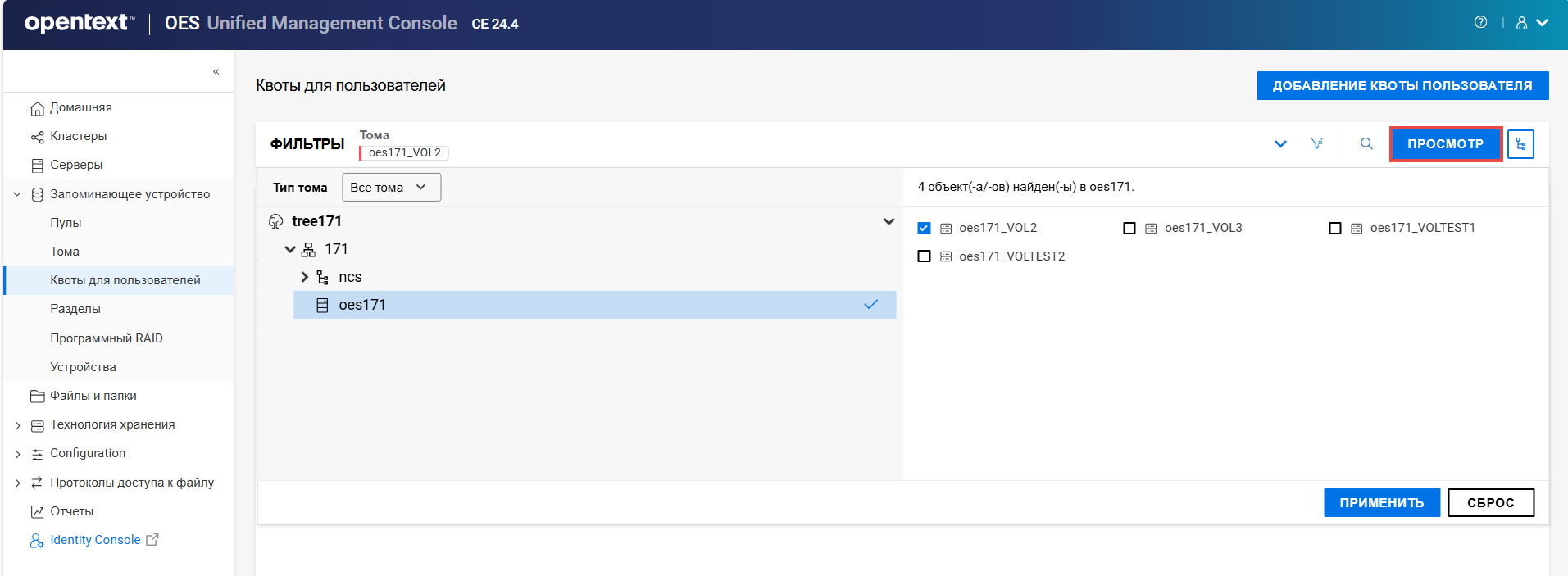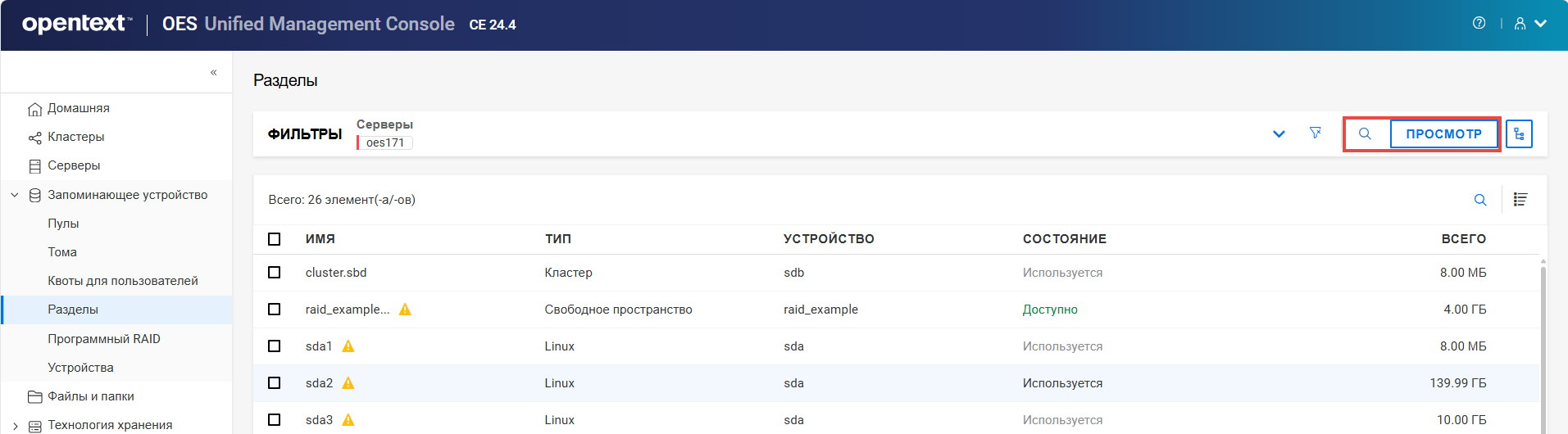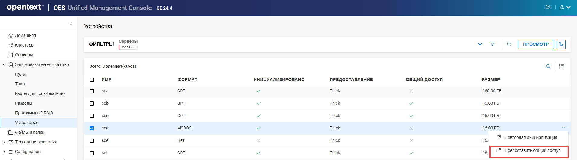 Переименование пула кластера или тома может привести к несогласованному поведению. Если после переименования невозможно вывести пулы или тома, откройте UMC из другого окна в режиме инкогнито.