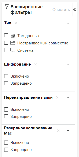 При начальном входе страница со списком кластеров будет пустой. Однако при просмотре в списке отображаются только объекты кластера благодаря расширенному и контекстно-зависимому фильтру. Выбранные кластеры выводятся на странице Кластеры.